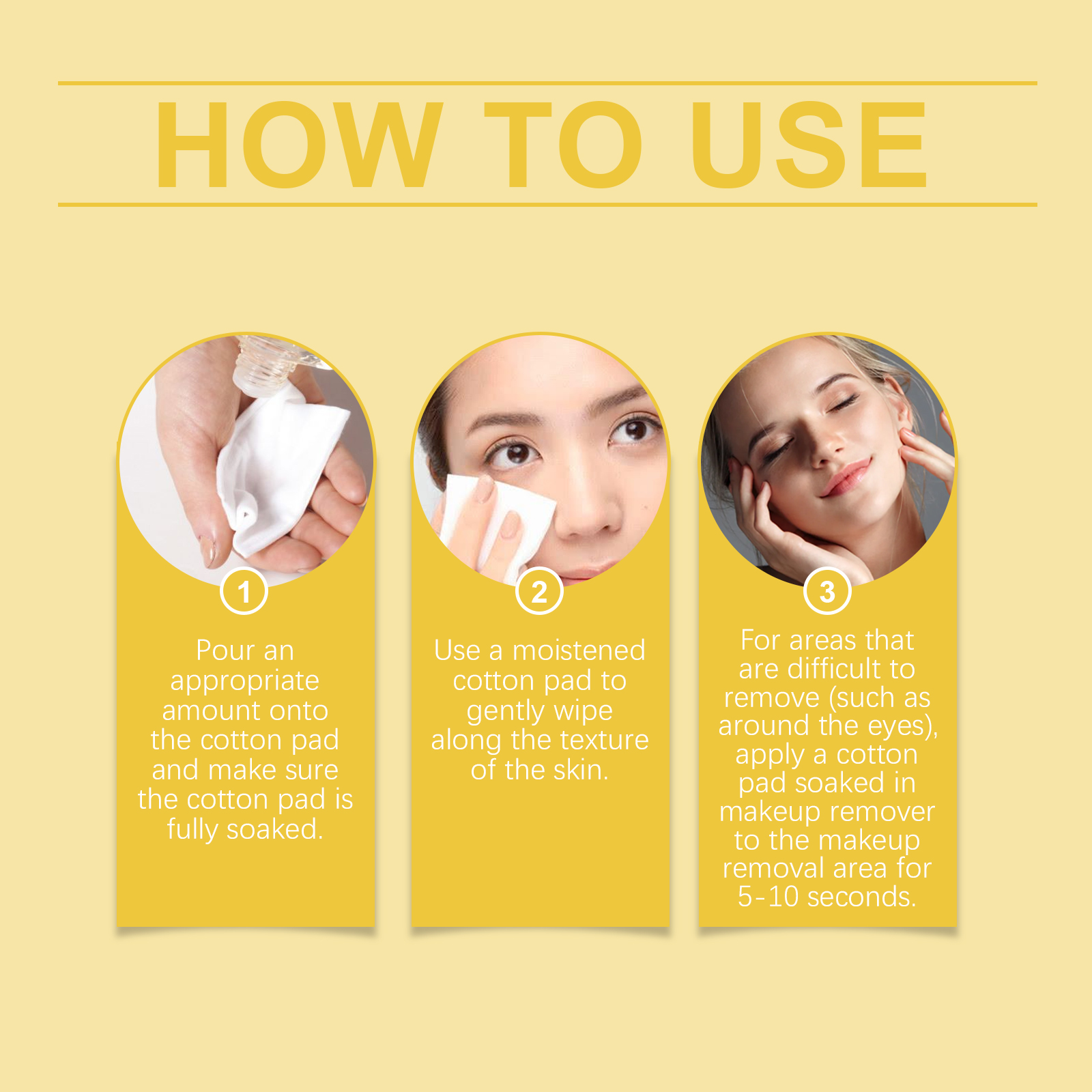 Our ginger and lemon makeup remover contains cocamidopropyl betaine and kojic acid. It moisturizes the skin and protects the sebum membrane. Its application is simple: Pour the appropriate amount onto a cotton pad, make sure the pad is fully soaked, gently wipe it with a moistened cotton swab along the texture of the skin, and for hard-to-remove areas (such as around the eyes) apply a cotton swab soaked in makeup remover to the makeup remover for 5-10 seconds. And can effectively dissolve stubborn makeup and dirt.