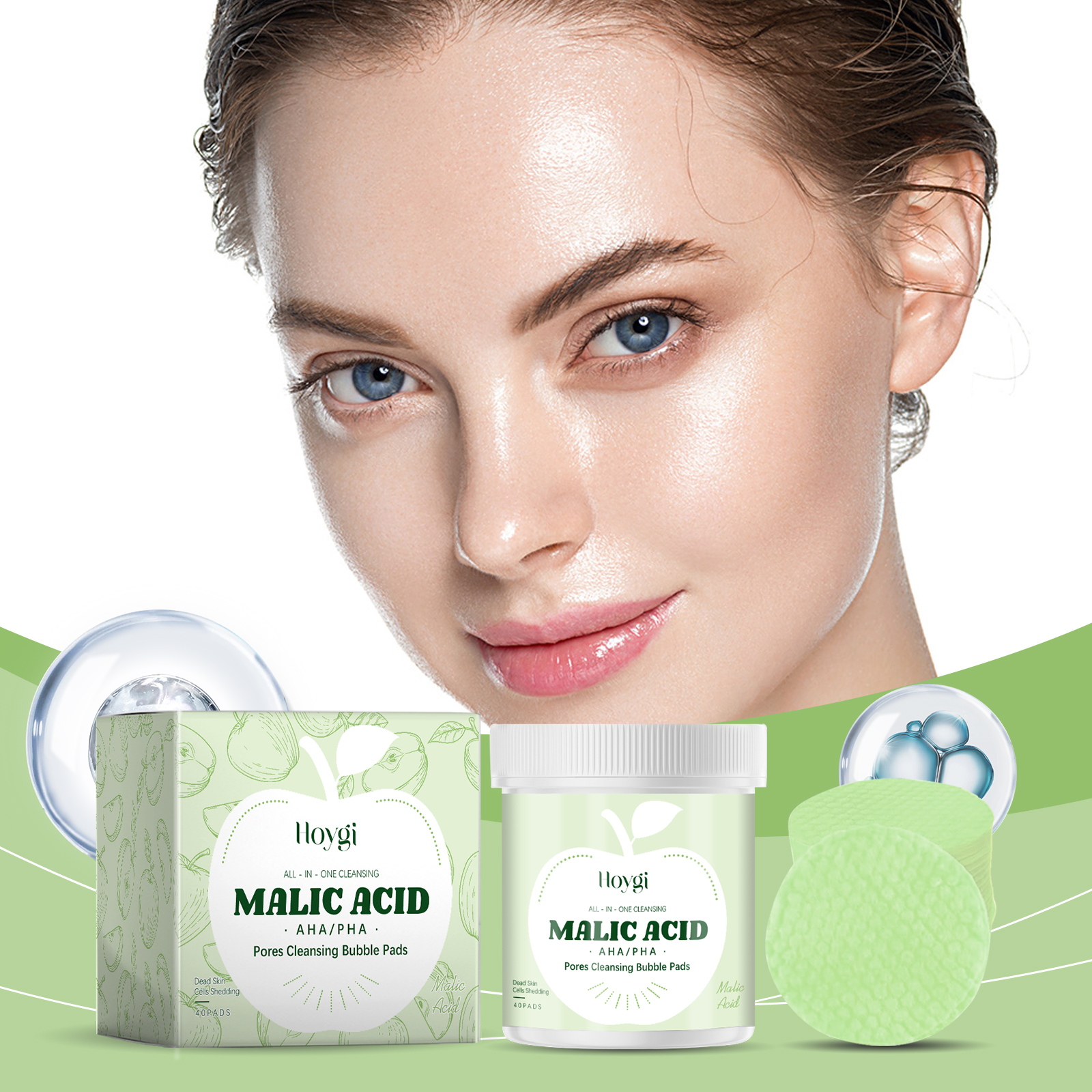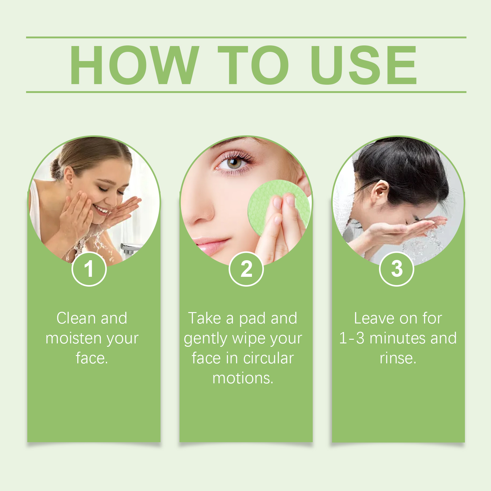 Our pore care deep cleaning spacers contain ethylhexylglycerin, malic acid, gluconolactone. It can effectively remove dead skin cells and improve smooth and soft skin. The way to use it is simple: clean and moisturize your face. Take a paper towel and gently wipe your face in a circular motion. Leave for 1-3 minutes and rinse. It also cleans pores and removes dirt, sebum and makeup residue.