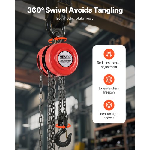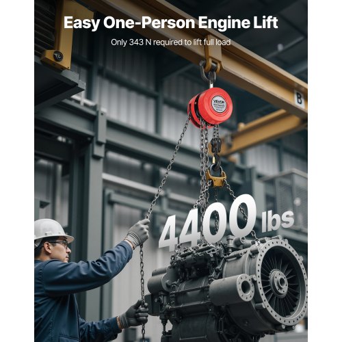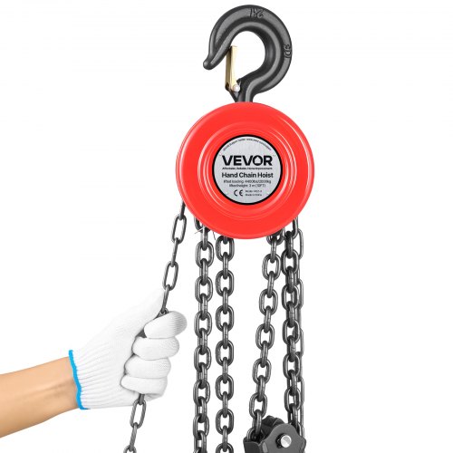 VEVOR Hand Chain Hoist 4400 lbs Capacity 10 ft Manual Chain Block with G70 Chain<br/>Durable Alloy Steel Pulley<br/>Smooth Ball Bearings<br/>Hook Security Latch<br/>High-Impact Durability<br/>Wide Application<br/>Upgraded Deep Groove Design<br/>Color: Red,Lift Height: 10 ft / 3 m,Number of Hooks on Chain: 2 chains,Hook Opening Size: 0.98 in / 25 mm,Product Dimensions (Excluding Hook and Chain):,Load Capacity: 4400 lbs / 2 T,Disc Diameter: 5.5 in / 140 mm,Item Model Number: HC2-3,Chain Grade: G70,Product Weight: 24 lbs / 10.9 kg,Main Material: Alloy Steel,Pulling Force at Full Load: 343N,Disc Thickness: 5.1 in / 130 mm,Pieces: 1