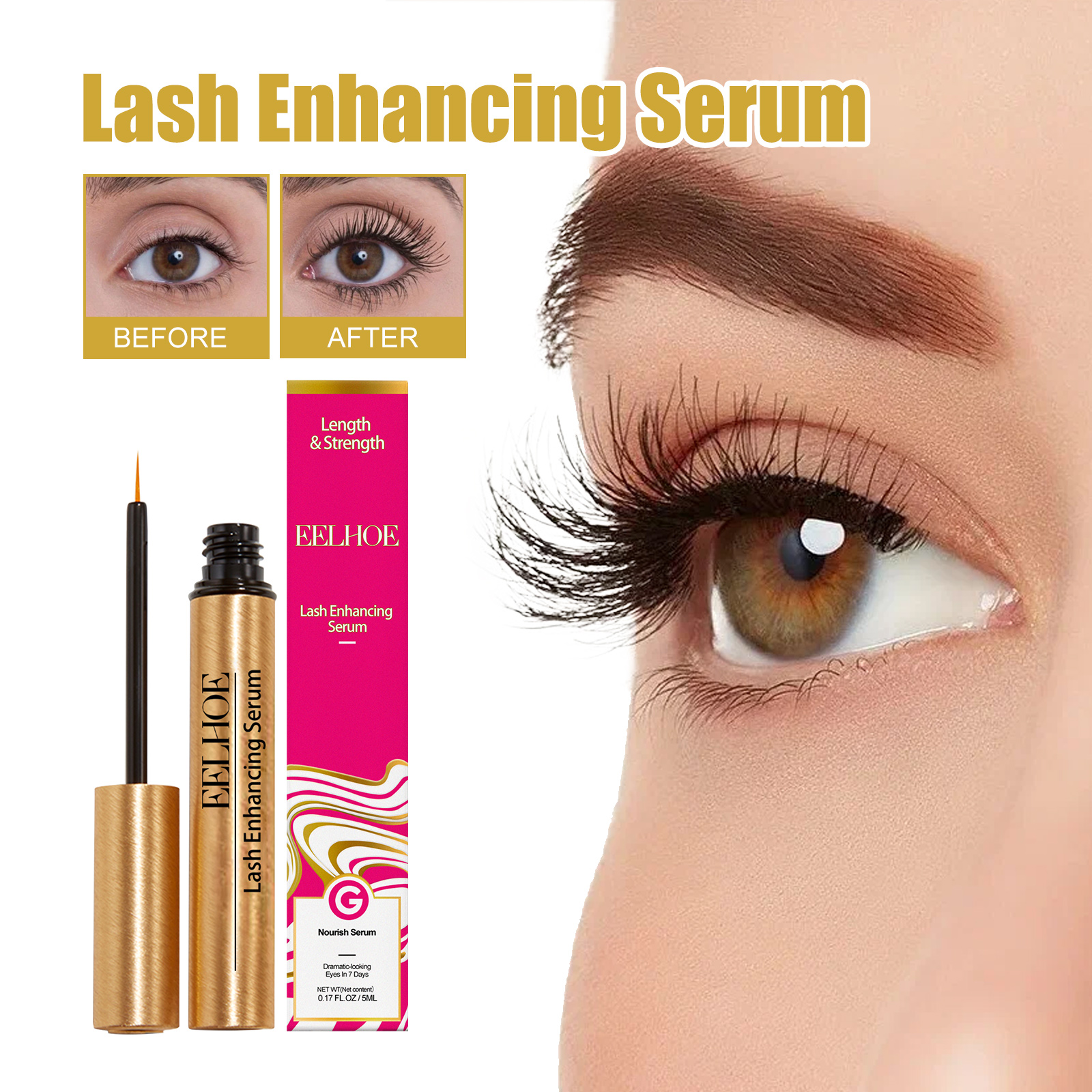 Our mascara contains Polygonum multiflorum extract, water lily flower extract. It can help thin, sparse and fragile eyelashes become stronger and reduce hair loss. The way to use it is very simple: clean and toner before going to bed, take a proper amount of serum, from the inner corner of the eye outward to the root of the eyelashes. For better results, use 1-2 times a day. And you can use it in the morning before makeup, and use it at night before going to bed, and the effect is even more oh.