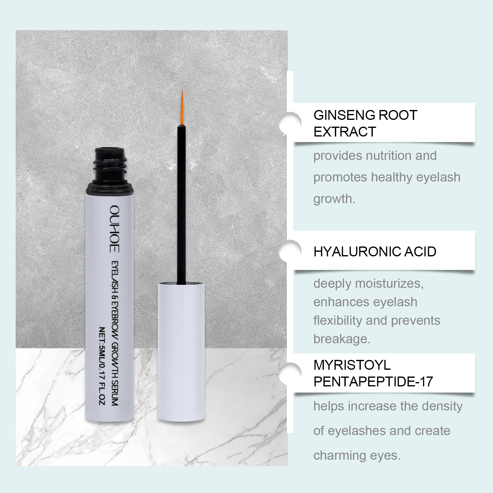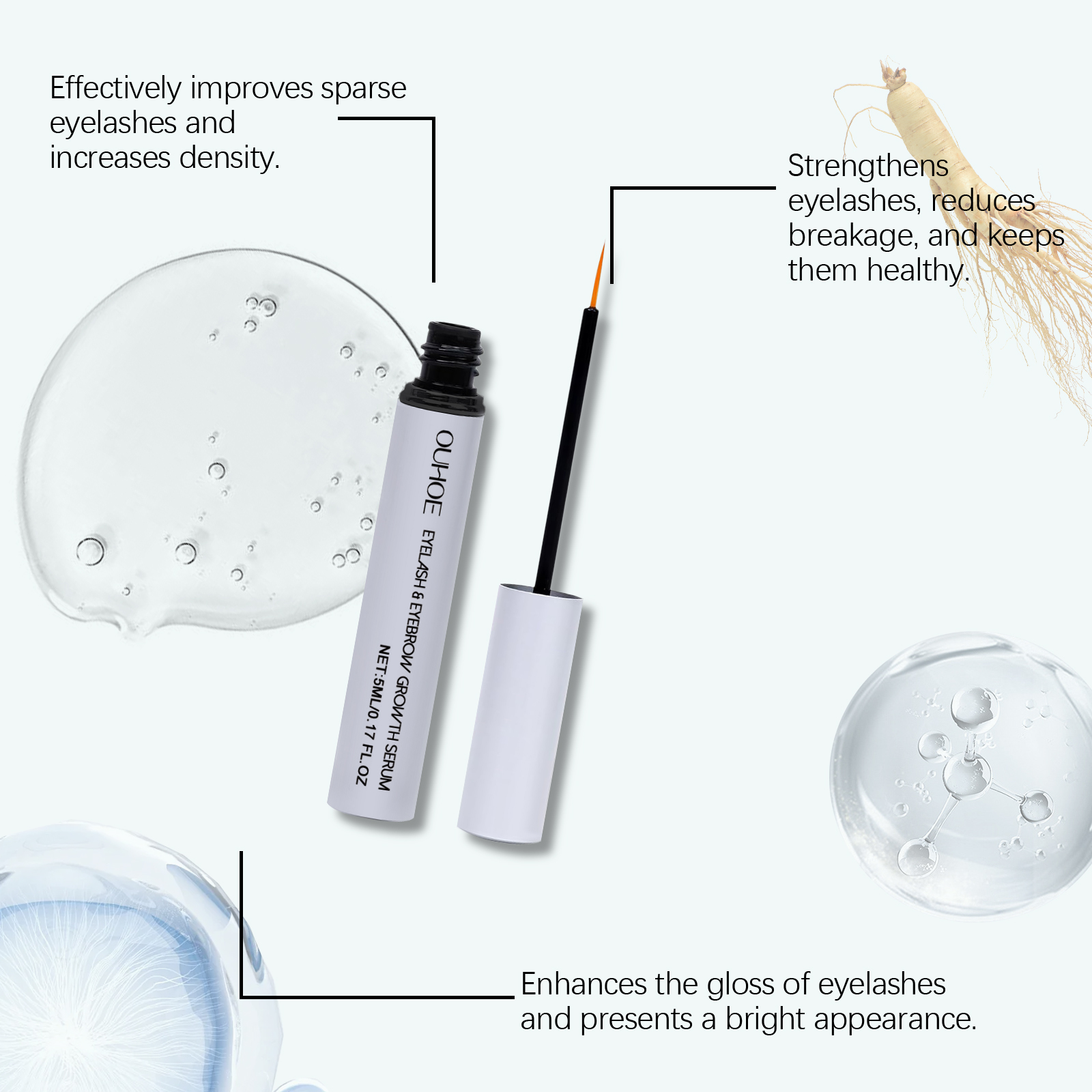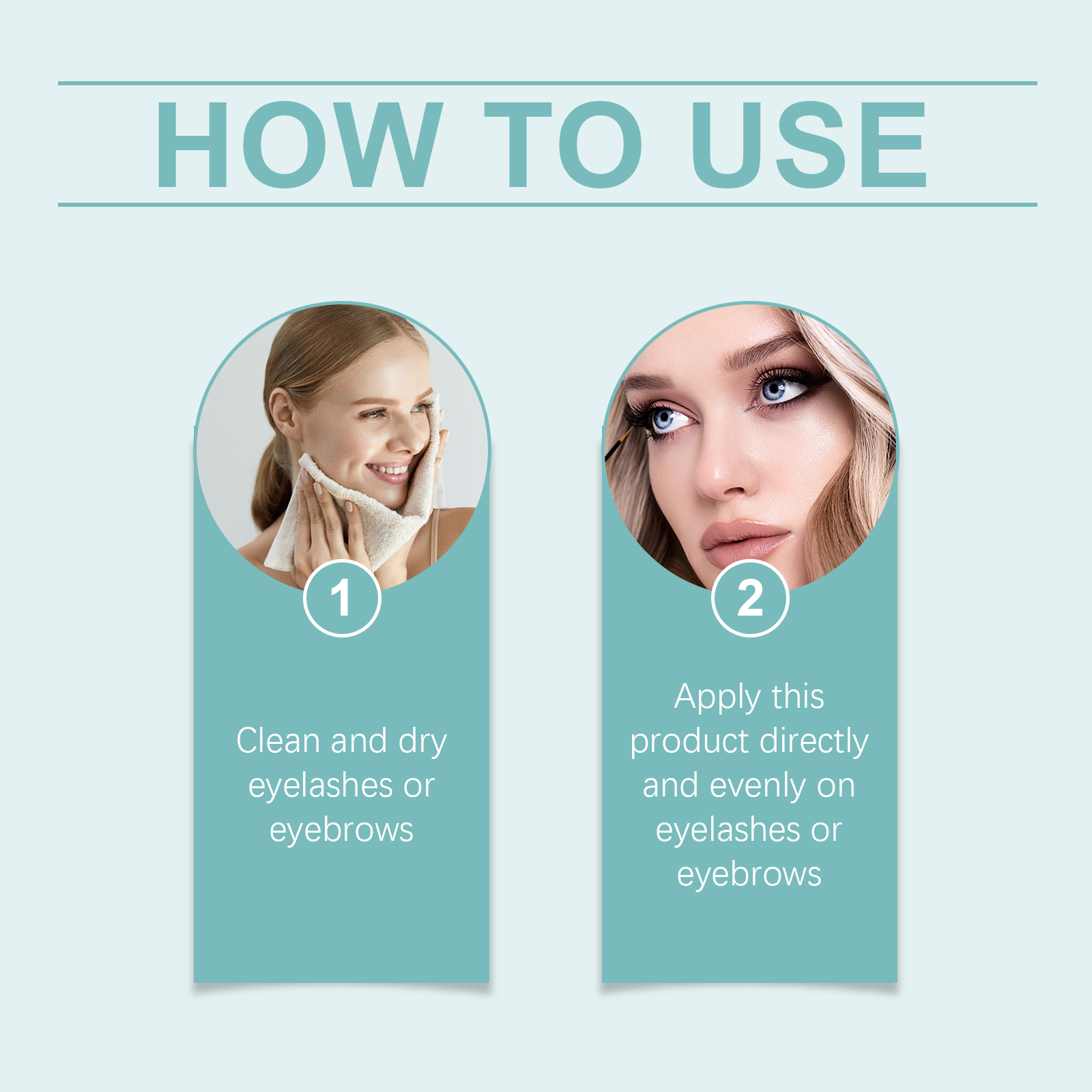 Our mascara contains ginseng root extract, hyaluronic acid, panthenol. It nourishes eyelashes, promotes growth, improves thinning eyelashes, and increases density. Strengthen lash toughness, reduce breakage and keep lash health. Its application is simple: clean and dry your eyelashes or eyebrows, and apply the product directly and evenly to your eyelashes or eyebrows. And it can enhance the gloss of the eyelashes and create a bright eyelash appearance.