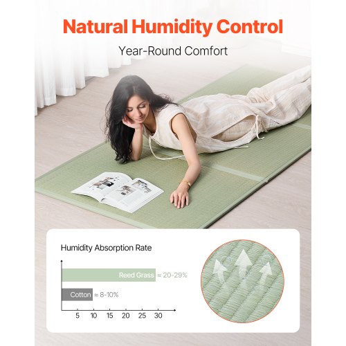 VEVOR Japanese Tatami Mat, Extended Twin XL - 39'' x 83'' Foldable Tatami Mattress, 100% Rush Grass, Japanese Floor Mattress with Non-Slip Backing & Fresh Scent, Tatami for Sleeping, Meditation, YogaTemperature RegulationAir PurificationNon-Slip & StableFoldable DesignVersatile ApplicationNatural MaterialsAssembly Type: 3-fold,Thickness: 0.5 inch / 12.7 mm,Item Model Number: LCSS990*2108,Product Weight: 10.58 lbs / 4.8 kg,Product Dimensions: 83 x 39 x 0.5 in / 2108 x 990 x 13 mm