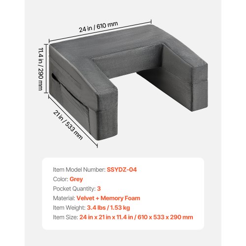 VEVOR Reading Pillow, Lap Desk Pillow with Washable Cloth, Large Bed Pillow with 2 Pockets and Cup Holder, Memory Foam Bed Rest for Reading, Gaming, Resting, Working, GreyCozy Fabric with Memory FoamSpacious 24 x 11 in Desk3 Storage PocketsErgonomic Leg SpaceVacuum-Sealed PackagingIdeal PresentItem Size: 24 in x 21 in x 11.4 in / 610 x 533 x 290 mm,Color: Grey,Item Model Number: SSYDZ-04,Material: Velvet + Memory Foam,Pocket Quantity: 3,Item Weight: 3.4 lbs / 1.53 kg
