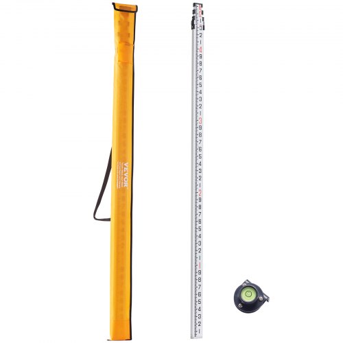 VEVOR Aluminum Grade Rod, 16-Feet/10ths 4 Sections Telescopic Measuring Rod,Double-Sided Scale 1/10ft Leveling Rod Stick,Aluminum Alloy Survey Rod w/ Bubble Level &Carrying Bag for Houses,Walls,FloorsHigh-Precision Leveling RodExtendable Leveling RodRobust Construction, Thickened AluminumUser-Friendly DesignWide ApplicationIncludes Carrying BagFolding Sections: 4pcs,Product Size (folded): 55.51x2.24x1.22in / 1410x57x31mm,Product Dimensions (extended): 192.44x2.24x1.22in / 4888x57x31mm,Color: Silver,Model: 16FT4J10,Tolerance: ±1/1000mm,Product Weight: 3.42lbs / 1.55kg,Scale: Dual-Sided: 1/10ft,Range: 16ft/4.88m,Main Material: Aluminum Alloy 6063-T5