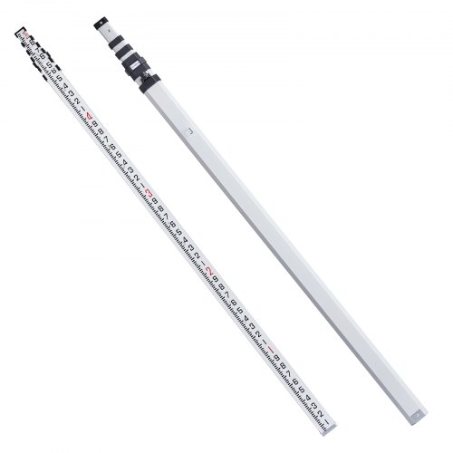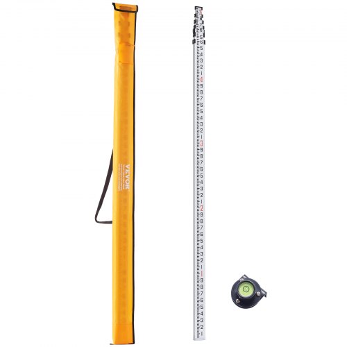 VEVOR Measuring Rod 25-Feet/10ths 6 Sections Telescopic Grade Rod 1/10ft w/ BagHigh-Precision Leveling RodExtendable Leveling RodRobust Construction, Thickened AluminumUser-Friendly DesignWide ApplicationIncludes Carrying BagProduct Size (folded): 61.81x2.28x1.57in/1570x58x40mm,Graduation: Double-sided: 1/10ft,Sections: 6pcs,Color: Silver,Model: 25FT6J10,Product Weight: 5.29lbs / 2.4kg,Product Size (extended): 301.18x2.28x1.57in/7650x58x40mm,Range: 25ft/7.62m,Main Material: Aluminum Alloy 6063-T5,Range Tolerance: ±1/1000mm