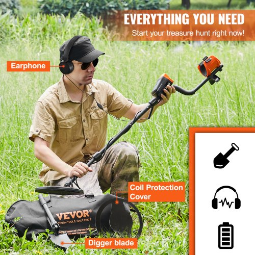VEVOR Metal Detector for Adults & Kids, 10 Inch Waterproof Search Coil with LCD Display 7 Modes, Adjustable 41''-52'' Aluminum Stem, DSP Chip Higher Accuracy Gold Detector 10'' Detection DepthAdjustable Handle7 Detection ModesDurable & ReliableComplete AccessoriesHighly Accurate DetectionLightweight & PortableSearch Coil IP Rating: IP68,Working Environment: -10℃ to 50℃,Noise: ≥ 80 dB,Detection Depth: 10 in,Audio Frequency: 400-1200 Hz,Material: ABS,Handle Length: 1056-1326 mm/41.57-52.2 in,Search Coil: 10 in,Sensitivity: ≤ 25 cm/9.84in,Voltage: 7.2-9.6V,Item Model Number: TS181A,Frequency: 7.2 kHz,Item Dimensions: 254 x 254 x 1326 mm/10 x 10 x 52.2 in,Net Weight: 2.35 kg/5.18 lbs,Package Size: 586 x 263 x 100 mm/23.07 x 10.35 x 3.94 in