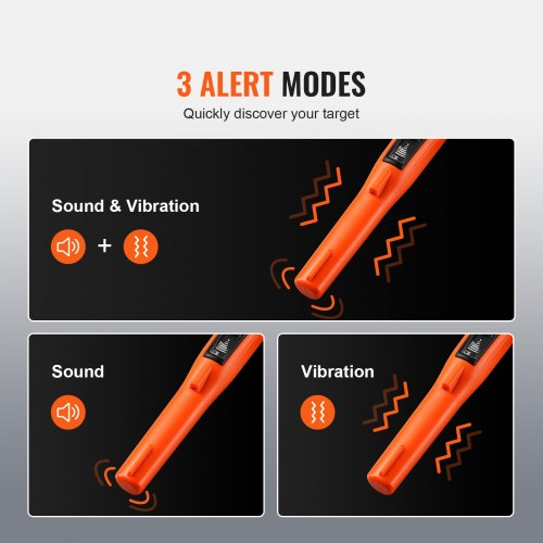 VEVOR Metal Detector Pinpointer, IP68 Fully Waterproof Handheld Pin Pointer Wand, 4.5" Detection Depth, 3 Modes, LCD Screen, Treasure Hunting Probe with Holster and 9V Battery, for Adults and KidsAll-Weather Underwater ExplorationPrecise DetectionDeep Detection Capability3 Exploration ModesEffortless Treasure DetectionComplimentary AccessoriesProtection Level: Fully Waterproof (IP68),Item Model Number: TS103,Maximum Detection Depth: 4.5 in,Product Dimensions: 9.8 x 1.8 x 1.7 in/250 x 45 x 42 mm,Alert Modes: LCD/Sound/Vibration/Sound + Vibration,Net Weight: 0.68 lbs/0.31 kg,Power Input Voltage: 9V,Main Material: ABS