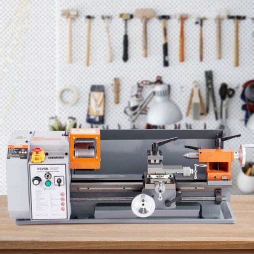 VEVOR Metal Lathe Machine, 7'' x 13.78'', Precision Benchtop Power Metal Lathe, 0-2200 RPM Continuously Variable Speed, 500W Brush Motor Metal Gears, with Tool Box for Processing Precision PartsMetal LatheContinuously VariableEnhanced SecurityExternal Poly-V-BeltHigh PrecisionWide ApplicationSpindle Speed: 0-2200 RPM,Tail Stock Taper: MT2,Hole Through Spindle Diameter: 20 mm / 0.79 in,Item Model Number: C0618BX350,Motor Power: 500W,Chuck Diameter: φ100 mm / 3.9 in,Spindle Taper: MT3,Product Dimensions(L x W x H): 755 x 320 x 300 mm / 29.7 x 12.6 x 11.8 in,Net Weight: 49.1 kg / 108 lbs,Main Material: HT200 Cast Iron