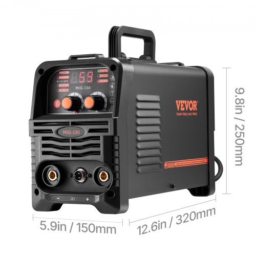MIG Welder 130Amp Mig Welding Machine 3-in-1 Flux Core MIG/Stick/Lift TIG WelderHigh Welding PerformanceWide ApplicationsIGBT Inverter TechEnhanced SafetyEasy to AdjustRich AccessoriesWelding Thickness: ≤ 0.31 inch (≤ 8 mm),Compatible Wire Type: Flux Core Wire,Compatible Maximum Wire Spool: 2.2 lbs / 1 kg,Output Current: 130A,Item Model Number: MIG-130,Product Weight: 14.1 lbs / 6.4 kg (Include All Accessories),Functions: Gasless MIG, MMA, Lift TIG,Product Dimensions: 12.6 x 5.9 x 9.8 inch / 320 x 150 x 250 mm,Input Capacity: 5.1 KVA,Compatible Wire Diameter: 0.03 inch / 0.8 mm, 0.04 inch / 1 mm