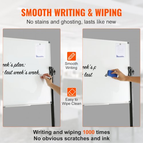 VEVOR Rolling Magnetic Whiteboard, Double-sided Mobile Whiteboard 36x24 Inches, Adjustable Height Dry Erase Board with Wheels, 1 Magnetic Erase & 3 Dry Erase Markers & Movable Tray Office, SchoolDouble Writing AreaSmooth SurfaceHeight AdjustableMove around SmoothlyBonus AccessoriesUbiquitous UsageCasters: Iron+PP,Size: 61.9x39.8x20 in/1571x1012x507mm,Writable Area: 34.6x23 in/878x583mm,Whiteboard Area: 36x24 in/915x610 mm,Material: Honeycomb Core Plate + Metal Frame,Magnets: Yes,Weight: 17 lbs/7.70 kg