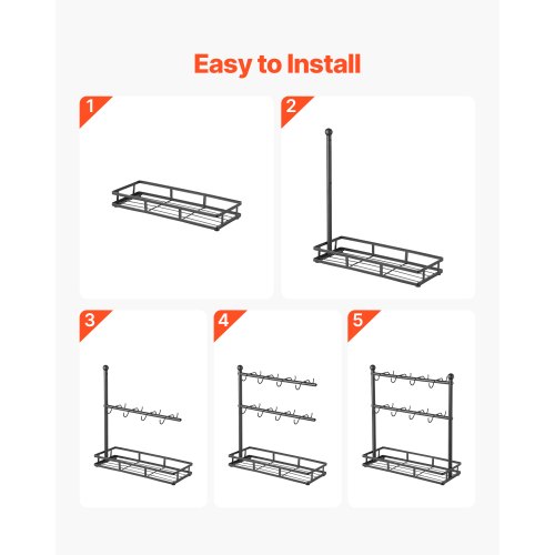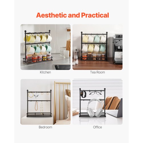 VEVOR Coffee Mug Holder for Countertop, 16 Hooks Coffee Cup Holder with Storage Base, 2 Tier Mugs Tree Rack Carbon Steel Mug Display Stand, for Home Coffee Bar Storage and Display (Matte Black)