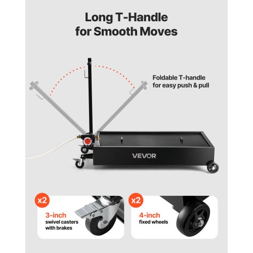 VEVOR Low Profile Oil Drain Pan, 20 Gallon Oil Drain Pan with Pump, Oil Change Pan with 180W Electric Pump, 8.2ft Hose & Folding Handle, Rolling Oil Drain Cart for Trucks, Buses, RVsSwivel Casters with Brake180W Electric PumpPrecise and Reliable MeshCollect and Drain MoreFolding T-handleUniversal CompatibilityMesh Dia.: Ø 0.16 inch/4 mm,Handle Size: 33"x11.8"/840x300 mm,Capacity: 20 Gallon,Wheels: 4 (Two with Brakes),Pitch: 0.24 inch/6 mm,Product Weight: 60 lbs/21.7 kg,Material: Carbon Steel,Product Size(LxWxH): 47.2"x25.9"x12.7"/1200x660x325 mm,Drain Hose Length: 8.2 ft/2.5 m,Filter Specification(LxW): 38.1"x18.7"/970x478 mm,Power: 180 W,Drain Hose Inner Dia.: Ø0.75 inch/19 mm