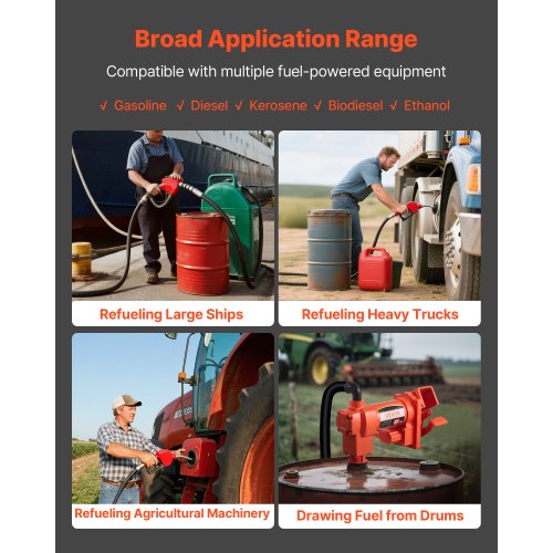 VEVOR Fuel Transfer Pump 110V Electric Oil Diesel Kerosene Pump 15 GPM 57 L/min<br/>High-Flow & High-Efficiency Fuel Transfer<br/>Durable Cast Iron Body<br/>High Lift, Quiet Operation<br/>Four High-Performance Features<br/>Easy Connection<br/>Base Mounting Holes<br/>Flow Rate: 15 GPM/57 L/min,Voltage/Frequency: AC 110-120V, 60Hz,Item Model Number: KEX-16AC-D01,Max Lift (Discharge): 37 ft/11.28 m,Power: 0.5HP/380W,Max Suction Lift: 8 ft/2.4 m
