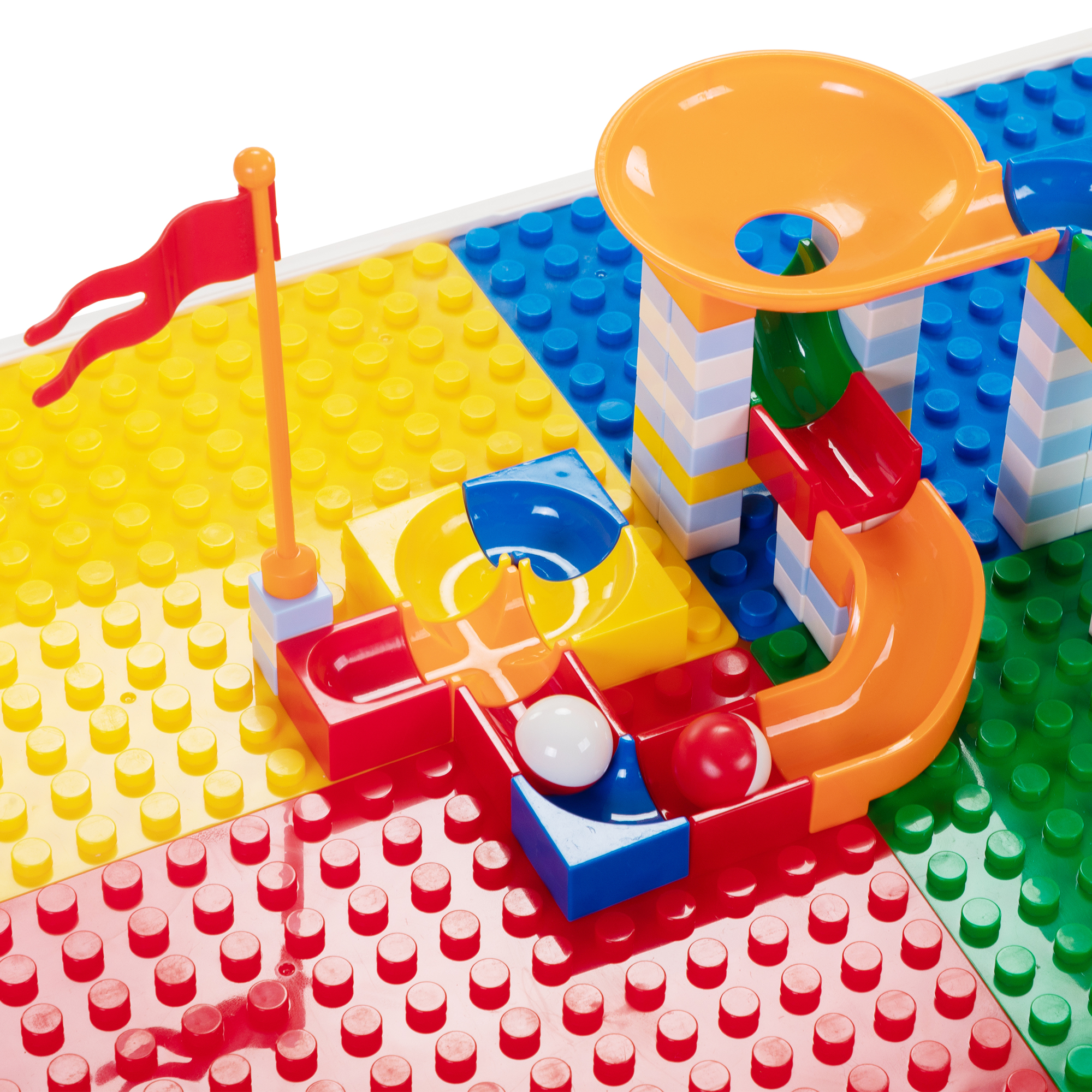 【Multi-Functional Table Set】: The two sides of the tabletop provide different functions. The white side is practical for kids to read, draw, and study. The other side is for building blocks, which allows children to make a DIY for imagination improvement.