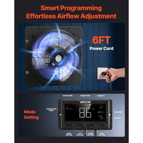 VEVOR 10 in Shutter Exhaust Fan with Smart Programming Controller Wall Mount