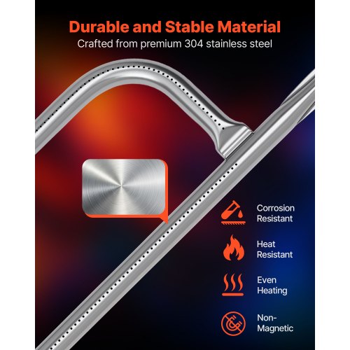 VEVOR Stainless Steel Tube Burner for Weber Q100 Q120 Q1000 Q1200 Baby Q Grills<br/>Enjoy Steady, Flavorful Grilling<br/>Fits Multiple Weber Q Models<br/>Premium 304 Stainless Steel<br/>Even Flame Distribution<br/>Direct Replacement, Easy Installation<br/>Easy Setup<br/>Type: P-Type,Tube Wall Thickness: 0.03 inch / 0.7 mm,Compatible Weber Q Series: Q100, Q120, Q1000, Q1200, and Baby Q,Item Model Number: 60040,Compatible Weber Q Series Models: 516001, 516002, 516501, 50060001, 50060301, 51010001, 51040001, 51060001, 51070001, 51080001, 51190001, 5120001, 51210001,Material: SUS304,Product Dimensions: Φ0.75 x 17.13 x 5.71 inch / Φ19 x 435 x 145 mm,Net Weight: 0.64 lbs / 0.29 kg,Replacement for Weber Part Numbers: 69957, 60040, 41657, 45657,Tube Diameter: 0.75 inch / 19 mm