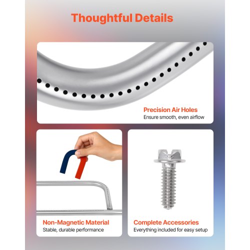 VEVOR Stainless Steel Tube Burner for Weber Q200 Q220 Q2000 Q2200 Q2400 Grills<br/>Enjoy Steady, Flavorful Grilling<br/>Built for Exact Compatibility<br/>Premium 304 Stainless Steel<br/>Even Flame Distribution<br/>Direct Replacement, Easy Installation<br/>Easy Setup<br/>Type: P-Type,Tube Wall Thickness: 0.03 inch / 0.7 mm,Compatible Weber Q Series: Q200, Q220, Q2000, Q2200, Q2400,Item Model Number: 41862,Compatible Weber Q Series Models: 396000, 396001, 396002, 566002, 53060001, 54060001,Material: SUS304,Product Dimensions: Φ0.75 x 20.37 x 7.50 inch / Φ19 x 517.5 x 190.5 mm,Net Weight: 0.82 lbs / 0.37 kg,Replacement for Weber Part Numbers: 60041, 69956, 41862,Tube Diameter: 0.75 inch / 19 mm