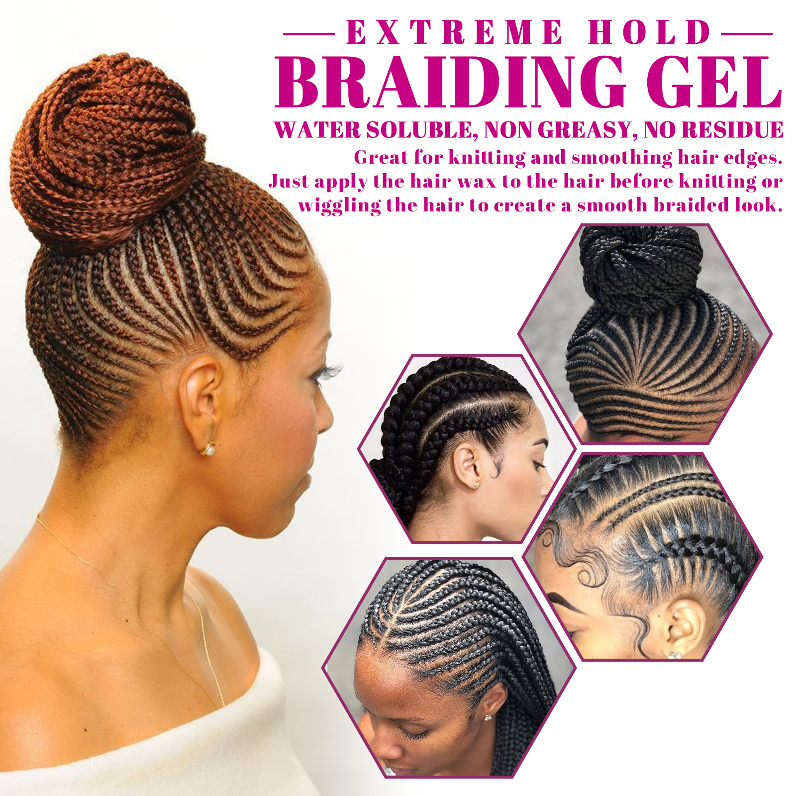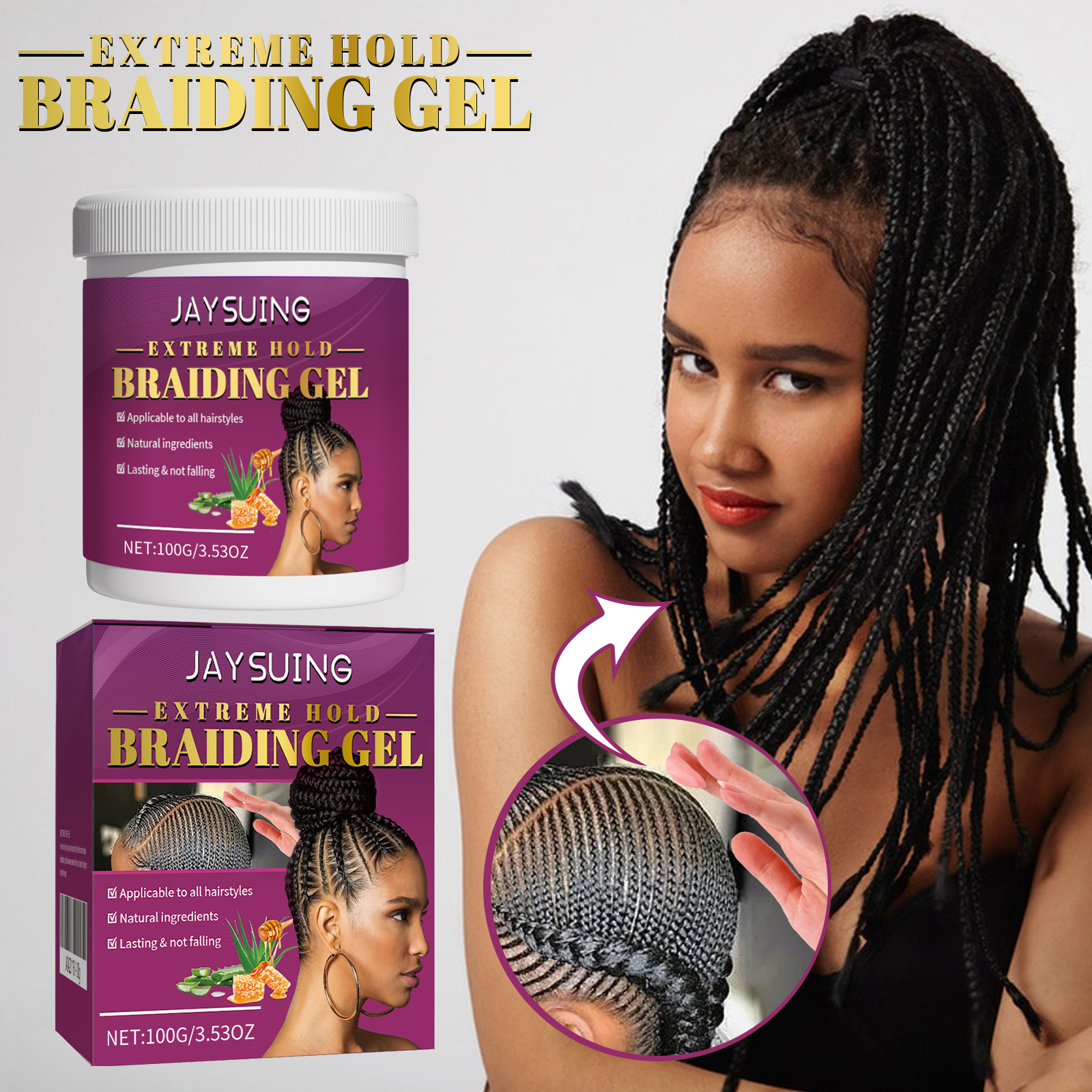 Our dreadlocks styling gel contains beeswax, olive oil, aloe vera extract. It can increase the manageability of hair, keep frizz under control, keep hair silky smooth, get a smooth grip, twist and weave out. Its use is simple: suitable for wet or dry hair. Apply a small amount of gel to your hair roots or hairline. Weave patterns, twisting and weaving as needed. Air dry or put in the dryer to set. Natural ingredients, non-greasy, keep hair lasting, smooth curly hair, reduce hair damage, keep hair soft, easy to manage, suitable for all hair types.