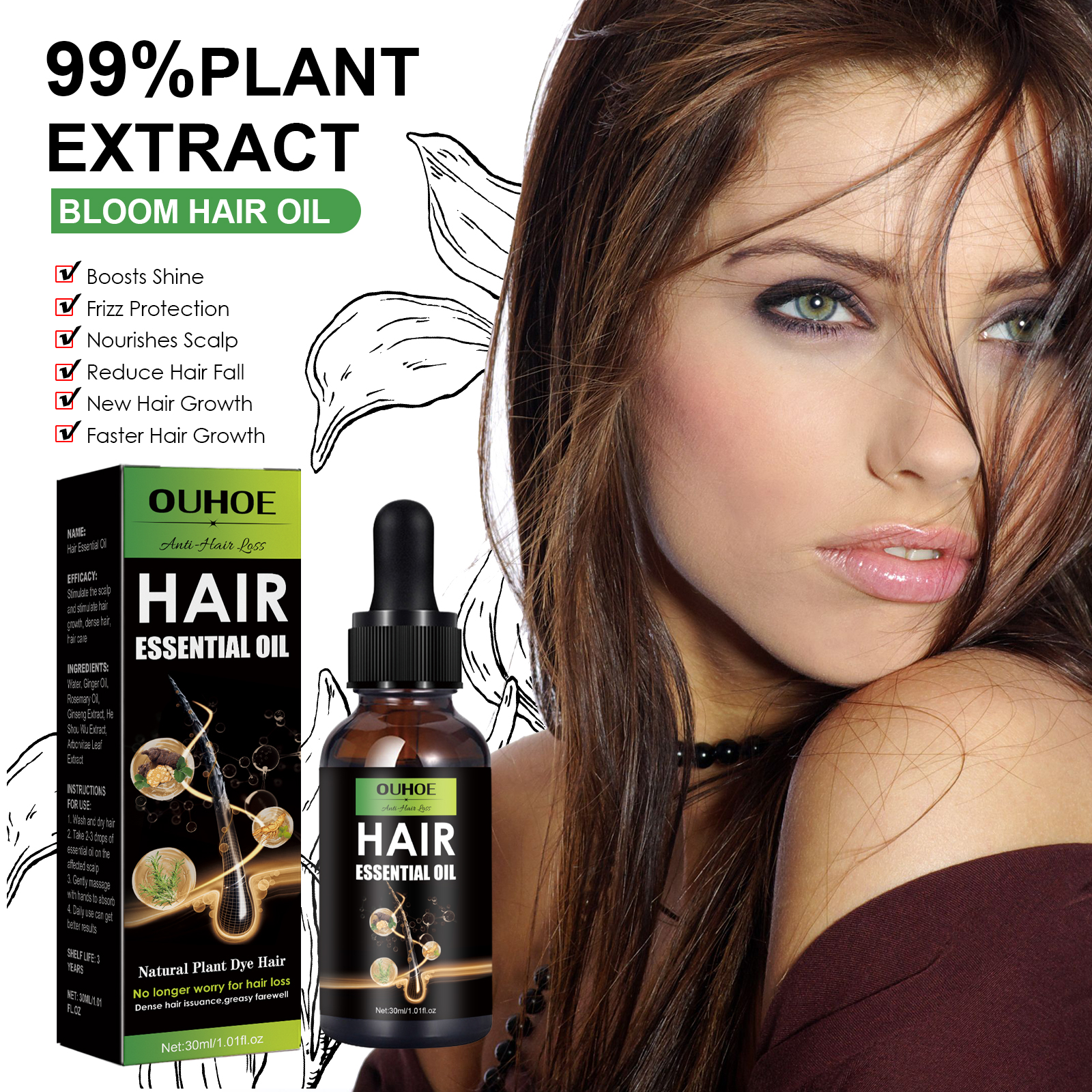 Our hair oil contains ginger oil, rosemary oil, ginseng extract. It can strengthen hair and scalp, effectively strengthen hair toughness, strengthen and moisturize hair, promote hair growth, protect and nourish scalp, reduce hair loss, and make your hair grow faster. Its use method is very simple: first wash and blow dry hair, then drop 2-3 drops of essential oil on the affected scalp, gently massage with the hand to absorb, in daily use can get better results, let the hair more black bright, full of luster.