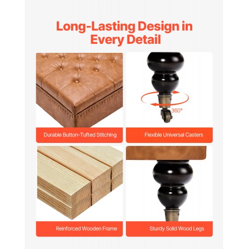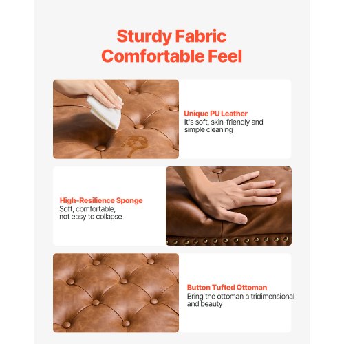 31-34 in Square Leather Ottoman with Storage Coffee Table for Living Room Brown<br/>Close-Stitched Quilting<br/>Button-Tufted Design<br/>Solid Wood Legs<br/>Premium Materials & Build<br/>One Ottoman, Many Uses<br/>Chic Looks, Hidden Space<br/>Cushion Thickness: 3.5 in/9 cm,Leg Height: 6.9 in/17.5 cm,Main Materials: Wooden Frame + Sponge + PU Leather + Rubberwood,Weight Capacity: 300 lbs/136 kg,Color: Brown,Item Model Number: CWD0098CA-KD,Hinge Feature: Child-Friendly Hinges,Product Dimensions: 31.5 x 31.3 x 18.5 inch/80 x 79.5 x 47 cm,Net Weight: 47.8 lbs/21.7 kg
