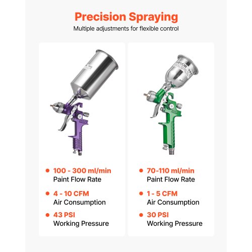 VEVOR 3-Piece Air Spray Gun Kit Automotive Paint Spray Gun Set with 3 Nozzles<br/>Multiple Adjustments<br/>Large-Capacity Paint Cup<br/>Precision Build for Smoother Spraying<br/>Wide Applications<br/>Durable to Use<br/>High Performance<br/>Product Type: Gravity Feed Spray Gun (3-Piece Set),Nozzle Quantity: 3,Nozzle Sizes: 1.0 mm / 1.4 mm / 1.8 mm,Paint Flow Adjustment: Yes,Air Pressure Adjustment: Yes,Paint Cup Capacities: 100 ml / 1000 ml / 1000 ml,Item Model Number: W-2000B5,Air Inlet Size: 1/4 NPT,Net Weight: 4.41 lbs / 2 kg,Main Material: Stainless Iron & Aluminum