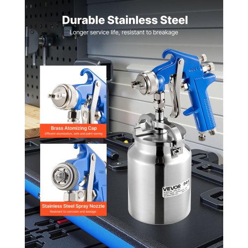 VEVOR Siphon Feed Spray Gun High Atomization Air Paint Spray Gun 1.8 mm Nozzle<br/>Multiple Adjustments for Precise Spraying<br/>Precision Build for Smoother Spraying<br/>Easy Cleaning & Maintenance<br/>Wide Applications<br/>Durable to Use<br/>High Performance<br/>Operating Pressure: 50 PSI ,Paint Delivery Rate: 160 - 240 ml/min,Paint Flow Adjustment: Yes,Air Inlet Size: 1/4" NPT,Paint Cup Capacity: 0.26 gallon / 1000 ml,Product Dimensions: 11.61 x 7.28 x 4.33 in / 295 x 185 x 110 mm,Nozzle Size: 1.8 mm,Air Consumption: 4 -10 CFM,Product Type: Siphon Feed Spray Gun,Nozzle Quantity: 1,Item Model Number: 4001,Net Weight: 1.98 lbs / 0.9 kg,Main Material: Stainless Steel & Brass