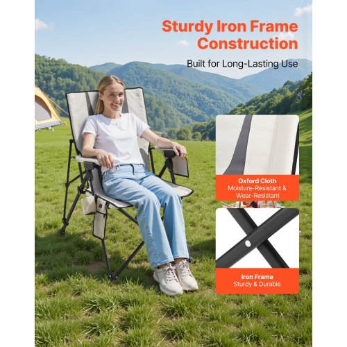 VEVOR Heated Camping Chairs Outdoor Portable Folding Chair 3 Heating Settings<br/>High-Back Camping Chair<br/>Stable and Secure Support<br/>Three Heating Settings<br/>Portable with Carry Bag<br/>Versatile for Any Setting<br/>Protective Packaging<br/>Item Material: Cotton-Padded Oxford Fabric + Q235 Steel,Color: Beige Gray,Item Model Number: AC2456-HOT,Item Dimensions: 22.83 x 32.67 x 55.11 inch/580 x 830 x 1400 mm,Item Type: High-Back Chair,Net Weight: 14.44 lbs/6.55 kg,Power Input: 5V/2A ±0.1