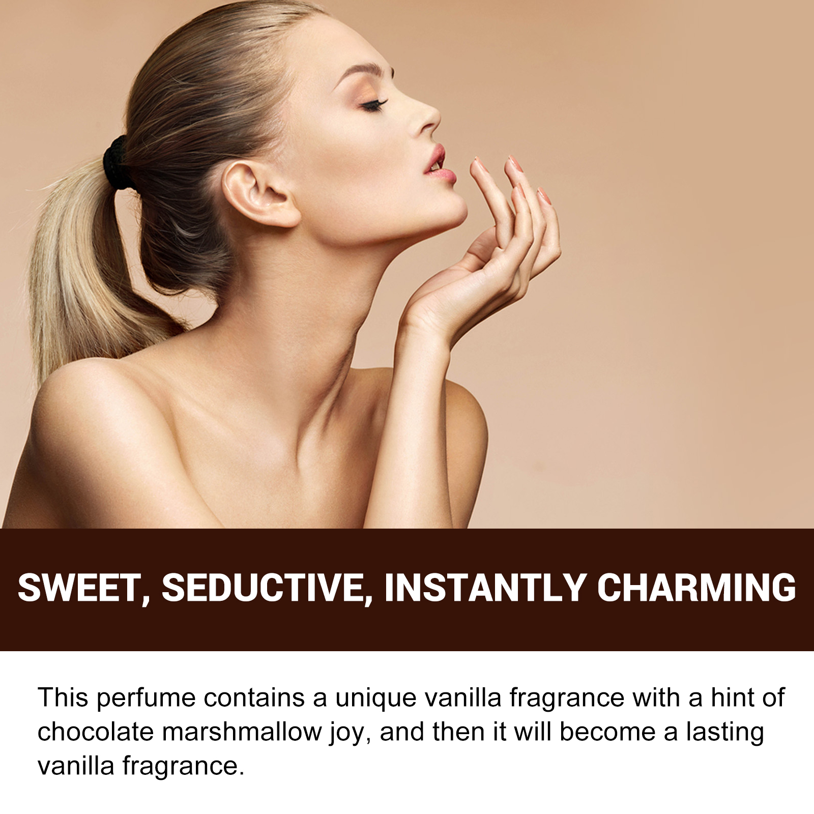 Our essential oil perfume contains PEG-40 hydrogenated castor oil, glycerin. It can give off a unique fragrance and increase natural pheromone levels. This perfume contains a distinctive vanilla scent with a hint of chocolate marshmallow joy, which then transforms into a long-lasting vanilla scent. Its use method is very simple: take the right amount of this product, evenly apply to the wrist, behind the ears, neck and other parts that want to stay fragrant, naturally can emit a charming fragrance. Essential Oil perfume is a high quality, durable perfume that does not contain alcohol. It has a distinctive and complex scent designed to attract attention and leave a lasting impression.