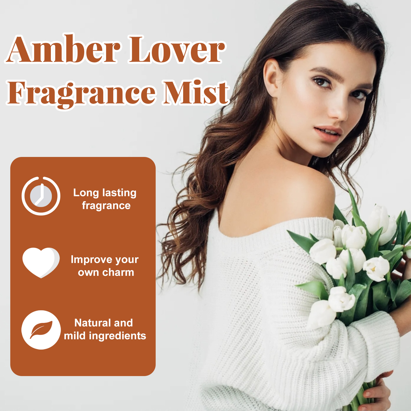 Our Amber Lover Fragrance Mist contains Vanilla Planifolia Fruit Extract, Aloe Yohjyu Matsu Ekisu, Chamomilla Recutita (Matricaria)Flower Extract. It can highlight your charm add elegance and confidence, make yourself stand out in social situations, attract more attention and appreciation, help create a romantic atmosphere, increase the attraction of emotional communication, make the date more memorable. Its use method is very simple: spray the perfume on the wrists, neck, behind the ears, or spray the perfume in the air and then mist, so that the perfume evenly distributed throughout the body, leaving a fragrant aroma. It can rejuvenate your body and mind and make it easy for you to fall into a deep sleep state.