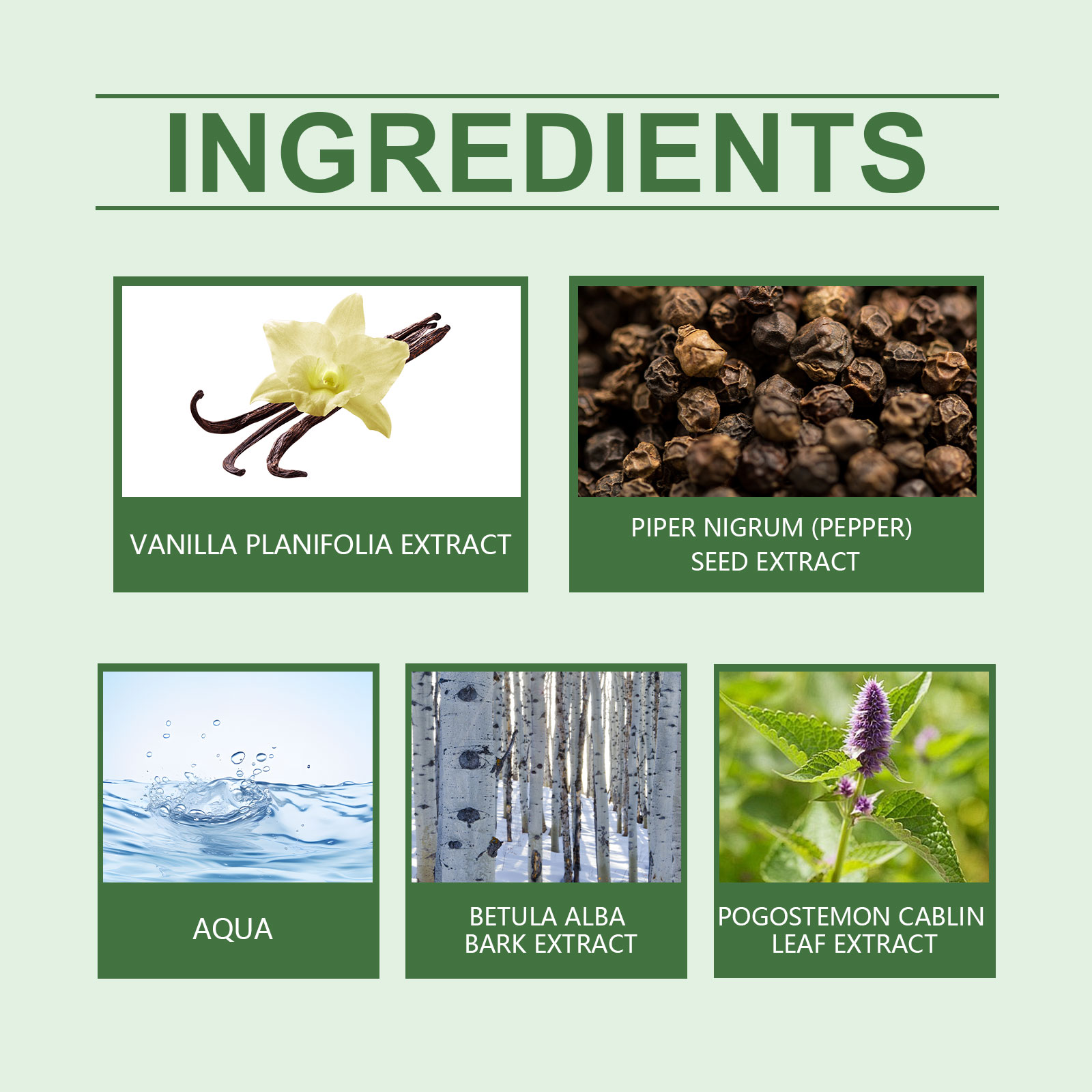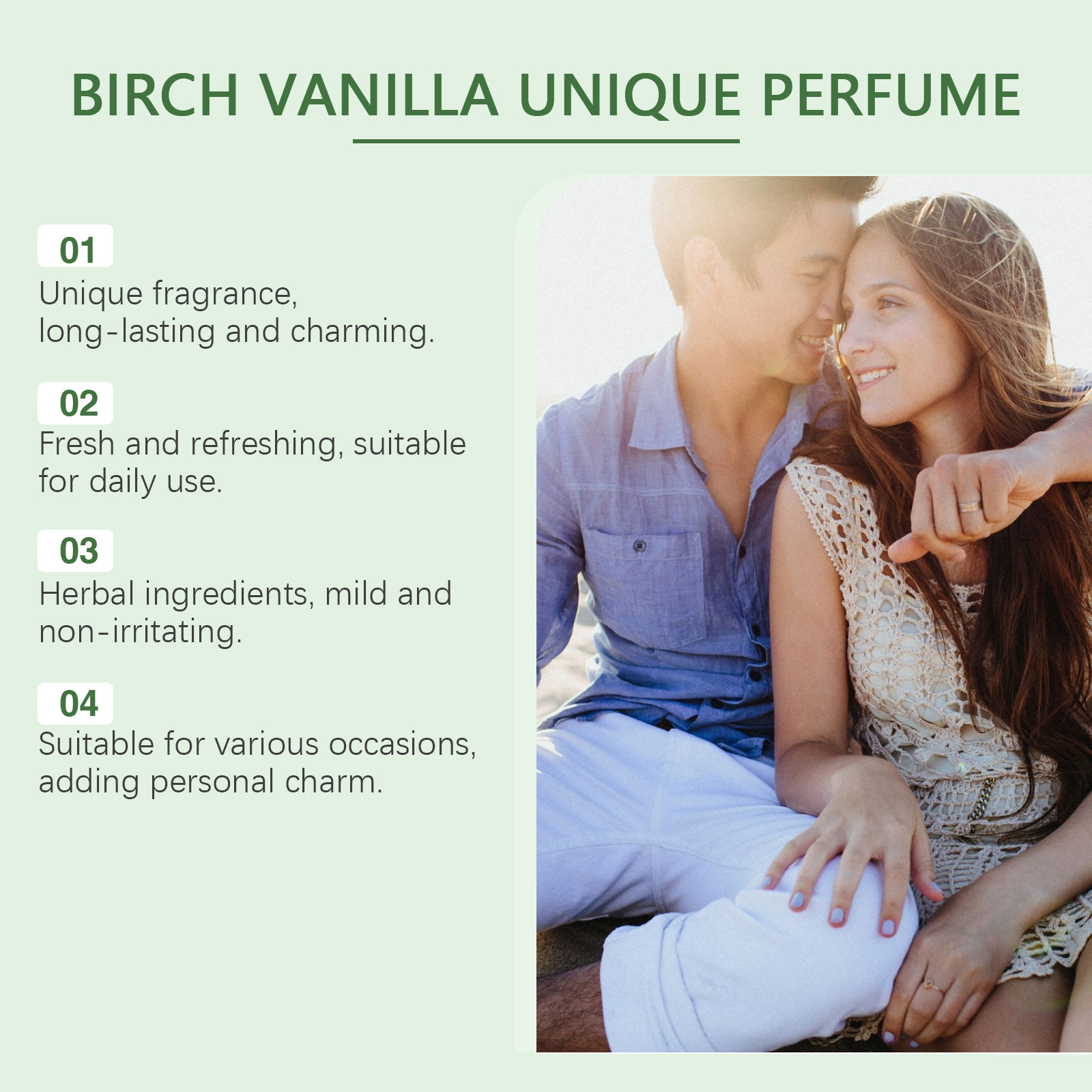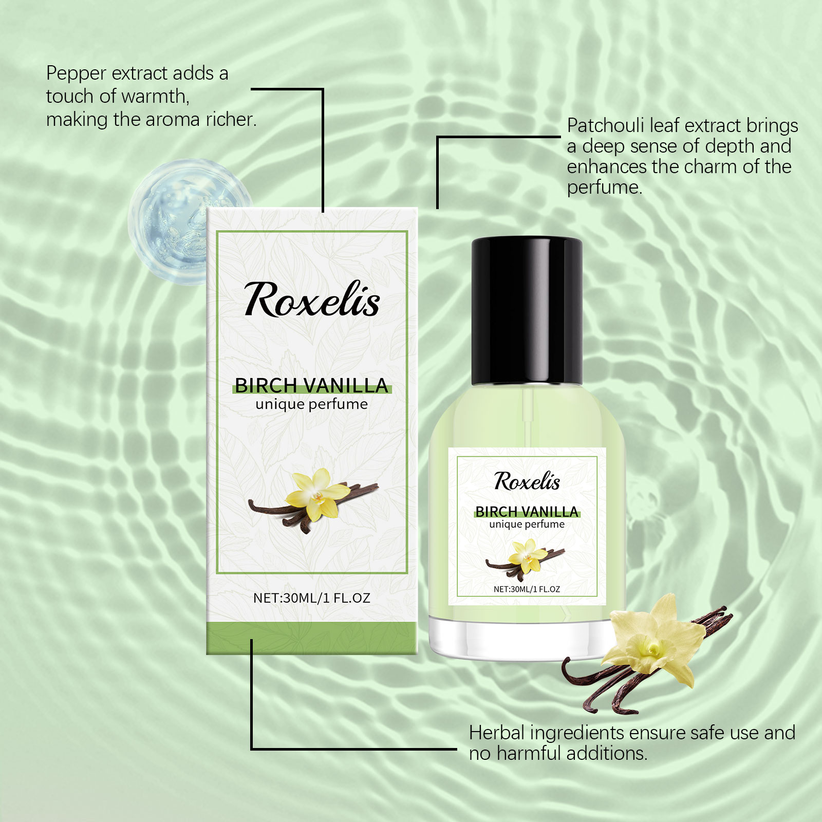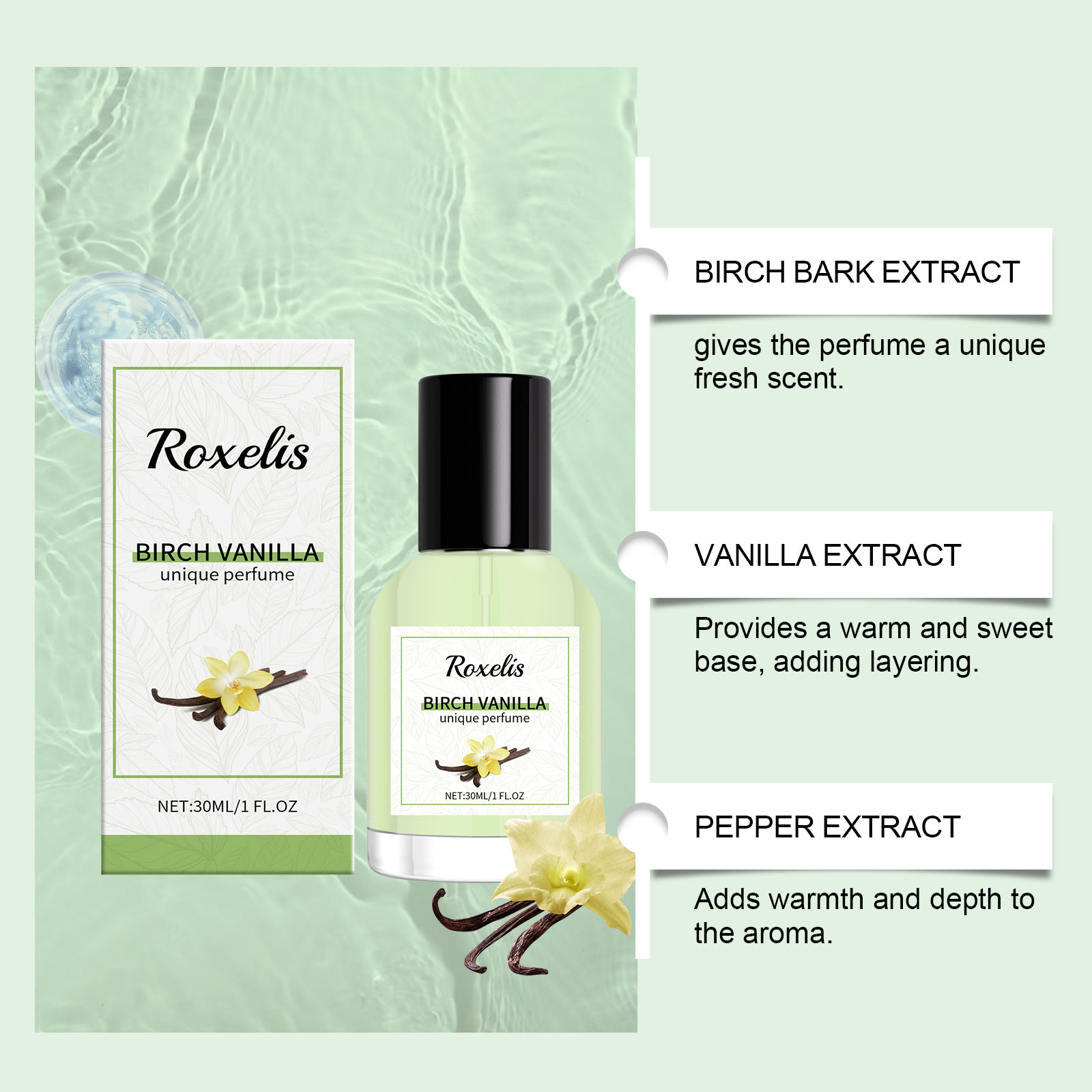Our Birch Vanilla Fragrance contains birch bark extract, vanilla extract and pepper extract. It can give perfume a unique fresh scent. Provides a warm and sweet base that adds layers; Adds warmth and depth to the aroma. Its use method is very simple: gently spray the perfume on the wrist, neck, behind the ears and other pulse points, each spray 1-2 times to achieve the best fragrance distribution effect. Birch bark is mixed with vanilla extract to create a unique and charming aroma. Carefully formulated to ensure a long-lasting scent that will stay with you all day.