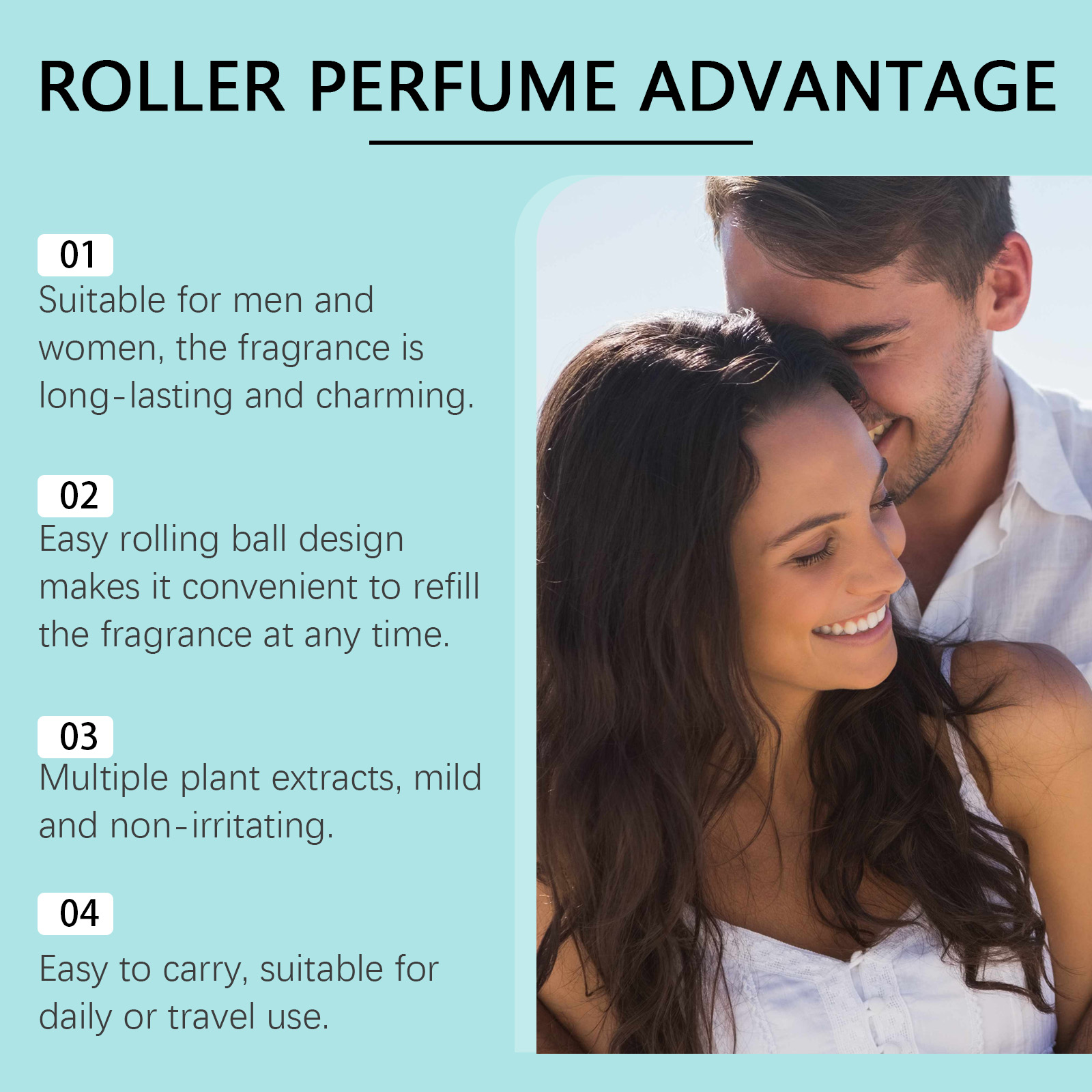 Our Charm Ball perfume contains rosemary oil, sandalwood extract and patchouli extract. It adds a fresh scent and a lasting charm. Distribute wood fragrance, enhance temperament. Enhance the aroma layer, improve durability. Its application is simple: Using a rolling ball design, the perfume is applied to the wrists, neck, behind the ears, knees and other pulse points. Use 1-2 times at a time to achieve the best fragrance release effect. Contains a variety of plant extracts, mild and non-irritating, suitable for all skin types. Awaken deep sexual attraction, effectively improve the level of sexual desire.