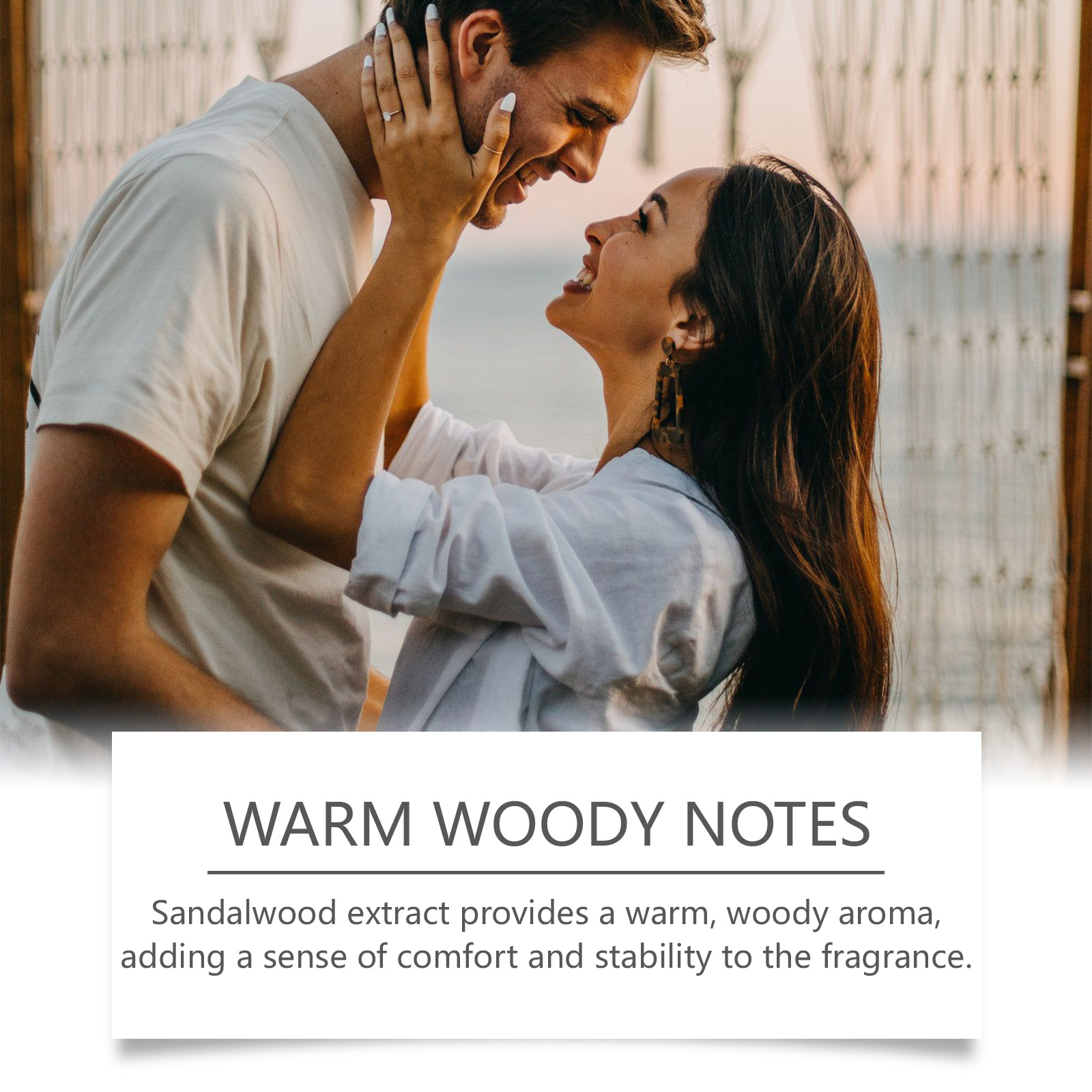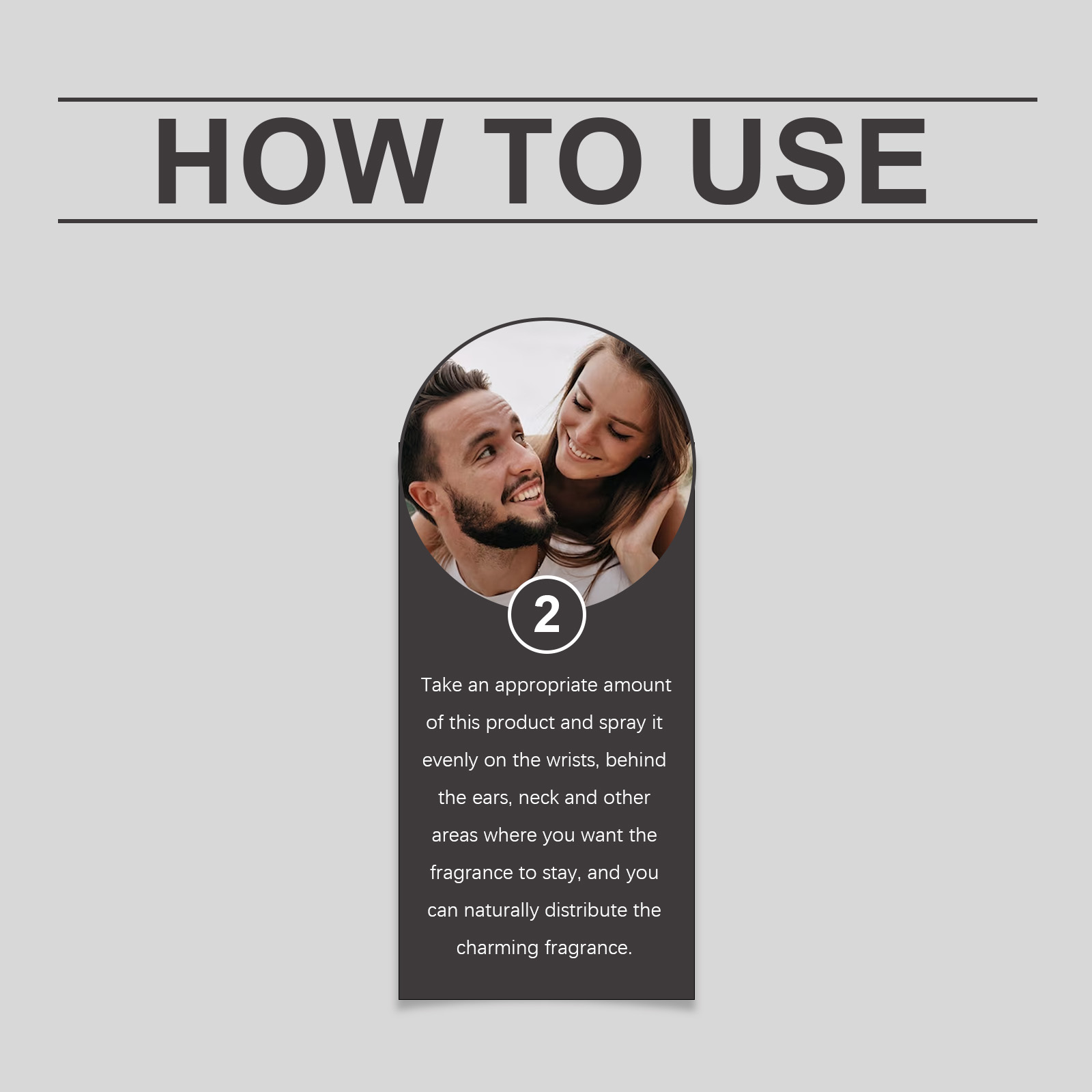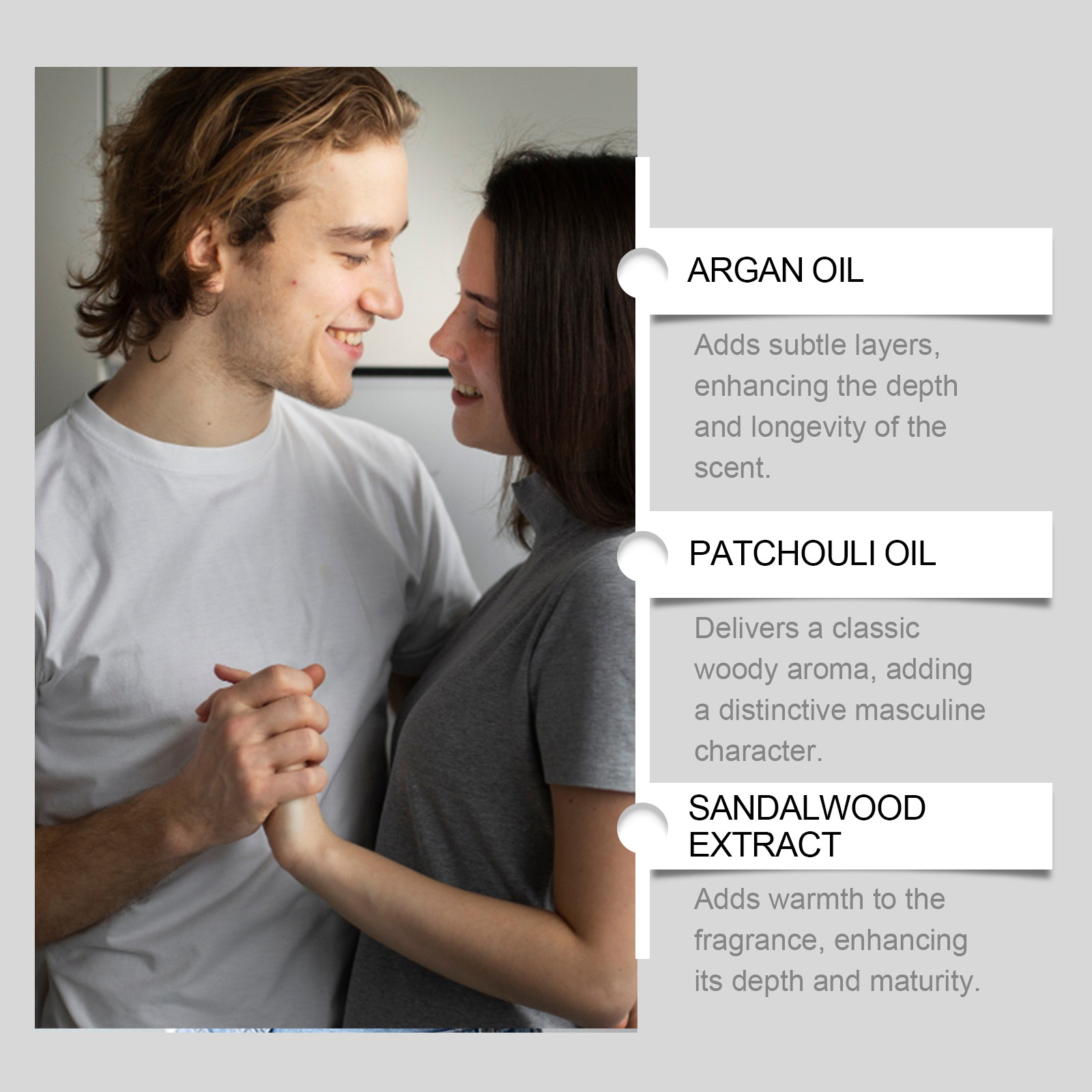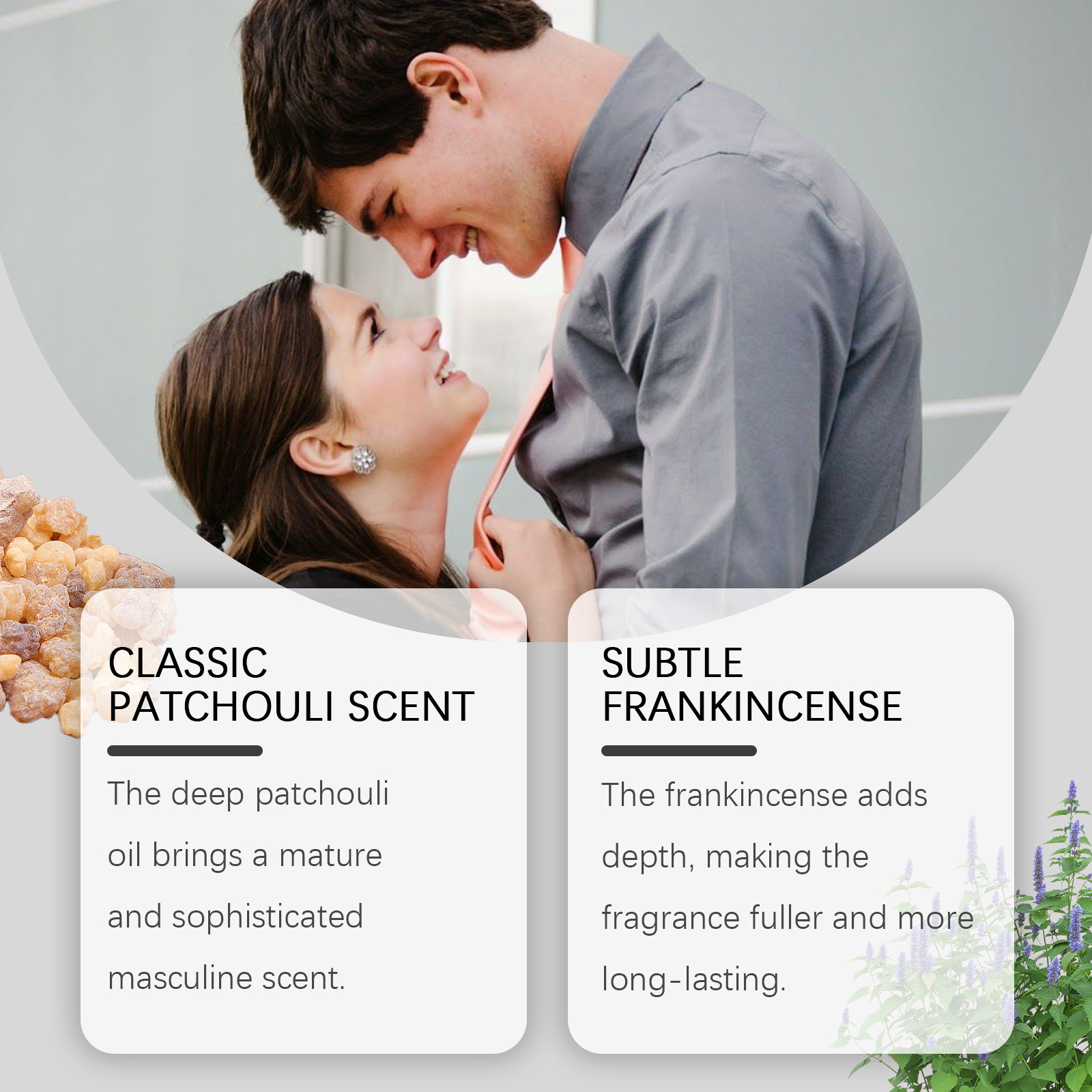 Our Charm Cologne contains frankincense, patchouli oil and sandalwood extract. Deep patchouli, frankincense and earth bring a depth of maturity and complexity, making the aroma more full and masculine. Lasting. The way to use it is very simple: take the right amount of this product evenly spray on the wrists, behind the ears, neck, etc., where you want the scent to stay, you will naturally emit a charming fragrance. And sandalwood extract provides a warm woody scent that adds comfort and stability to the scent.