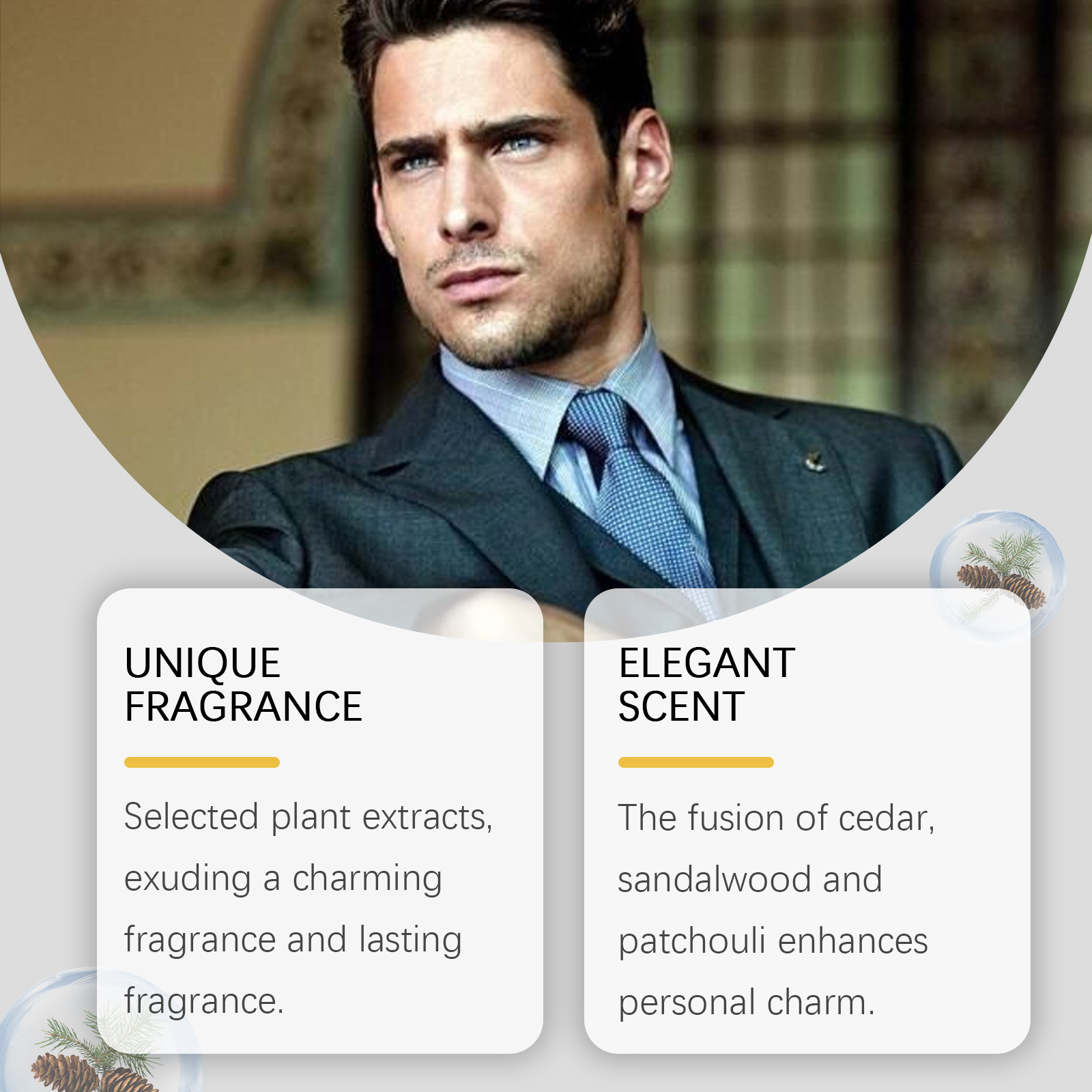 Our Cologne Luxury Eau de Toilette contains cedar extract and sandalwood extract. It selects the plant essence and exudes a charming aroma and lasting fragrance. The combination of cedar, sandalwood and patchouli enhances personal charm. Its use method is very simple: gently spray the perfume on the wrist, neck, behind the ears and other pulse points, each spray 1-2 times, to achieve the best perfume distribution effect. And can be suitable for all skin types, the use of safe, non-irritating, long-lasting fragrance exudes a stable and elegant atmosphere, highlighting the maturity and confidence of the perfume holder.