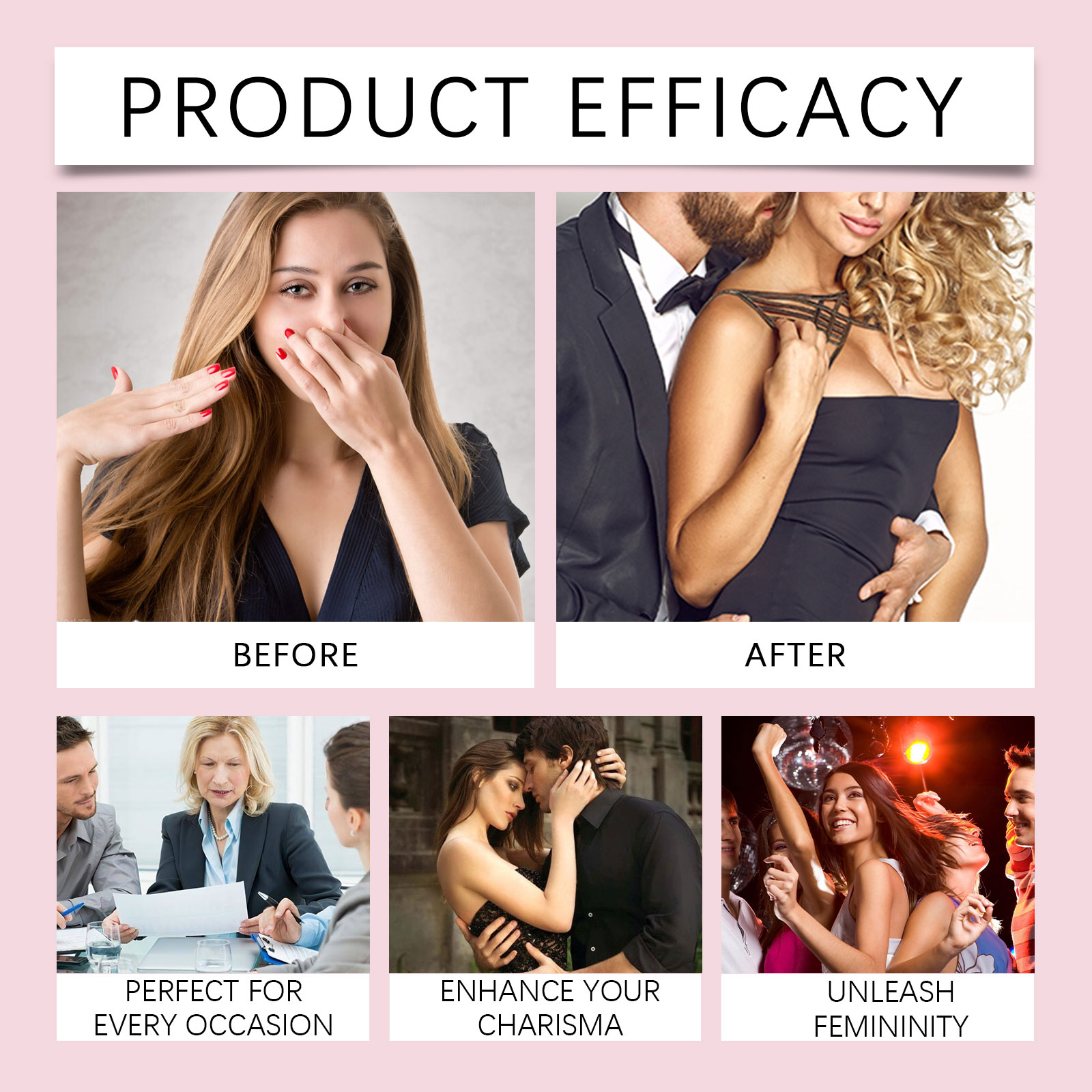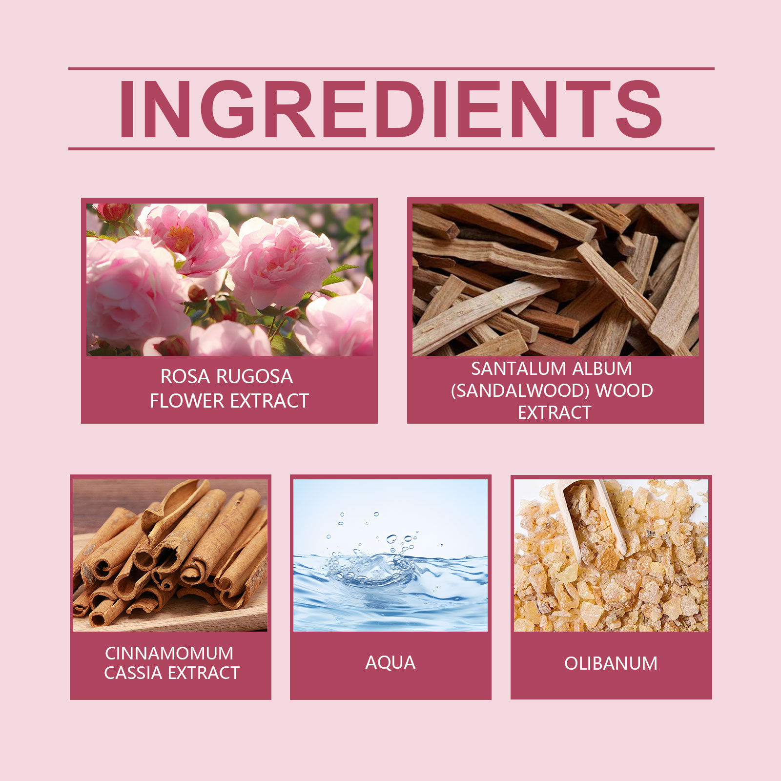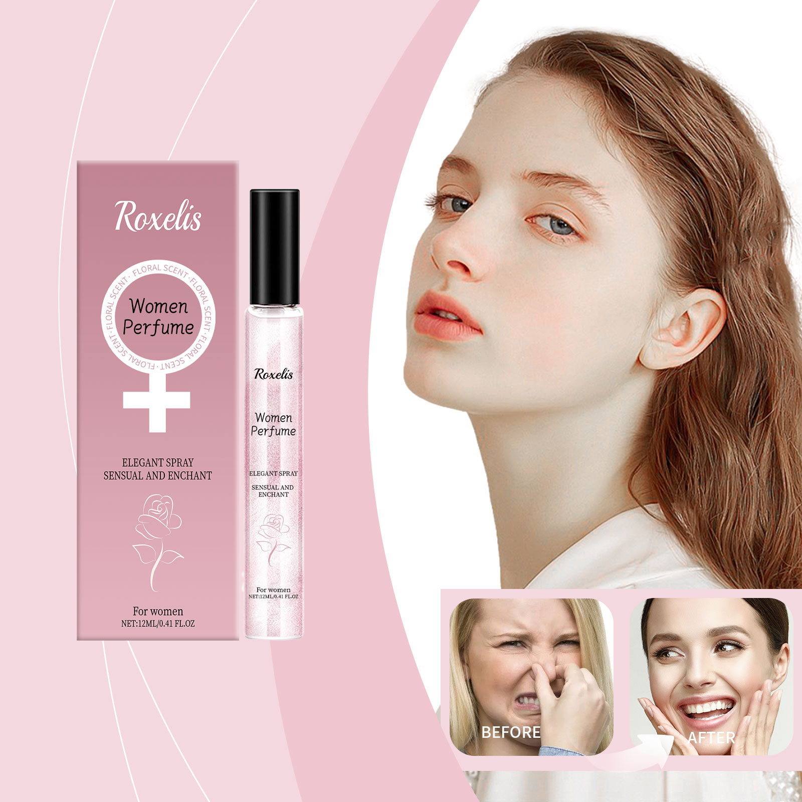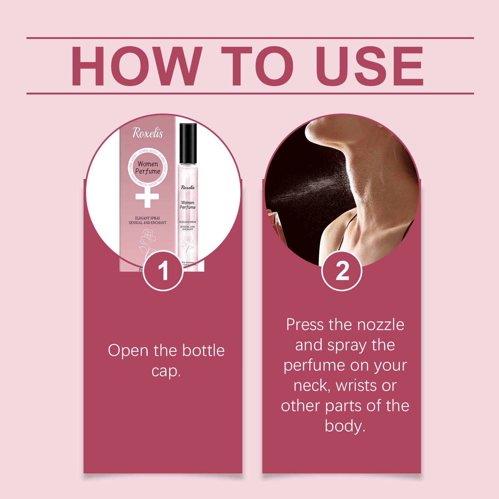 Our light floral Charm perfume contains rose extract, cinnamon extract, sandalwood extract. It can bring elegant and charming flowers, enhance the temperament. Adds a warm and spicy scent. Brings a layered scent. Gives the perfume a warm woody aroma and enhances its durability. How to use it is very simple: 1. Open the bottle cap. 2. Press the nozzle and spray the perfume on your neck, wrists or other parts of your body. Rose essence brings soft fragrance, enhances temperament and highlights feminine charm; Sandalwood extract gives the perfume a warm woody scent and enhances the overall layering.