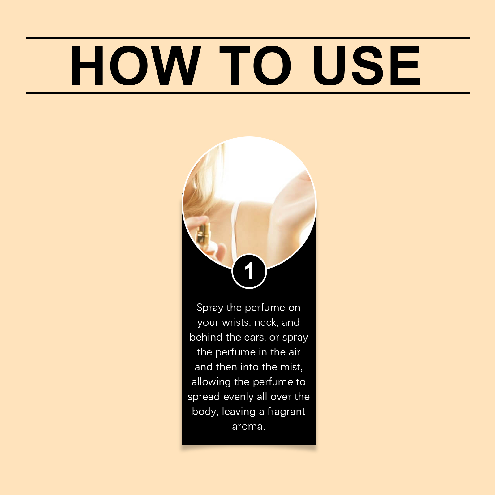 Our eau de Toilette spray contains amber extract, peony root extract, cinnamon extract. It gives off a sweet smell and protects the skin. Provides a fresh floral scent and moisturizing effect. Gives off a charming aroma to keep you fresh. Its application is simple: spray the perfume on the wrists, neck and behind the ears, or spray the perfume in the air and then spray into the atomizer, allowing the perfume to spread evenly throughout the body, leaving a fragrant aroma. No irritating ingredients, suitable for all skin types, safe to use. Highly concentrated formula, long-lasting fragrance, all day long.