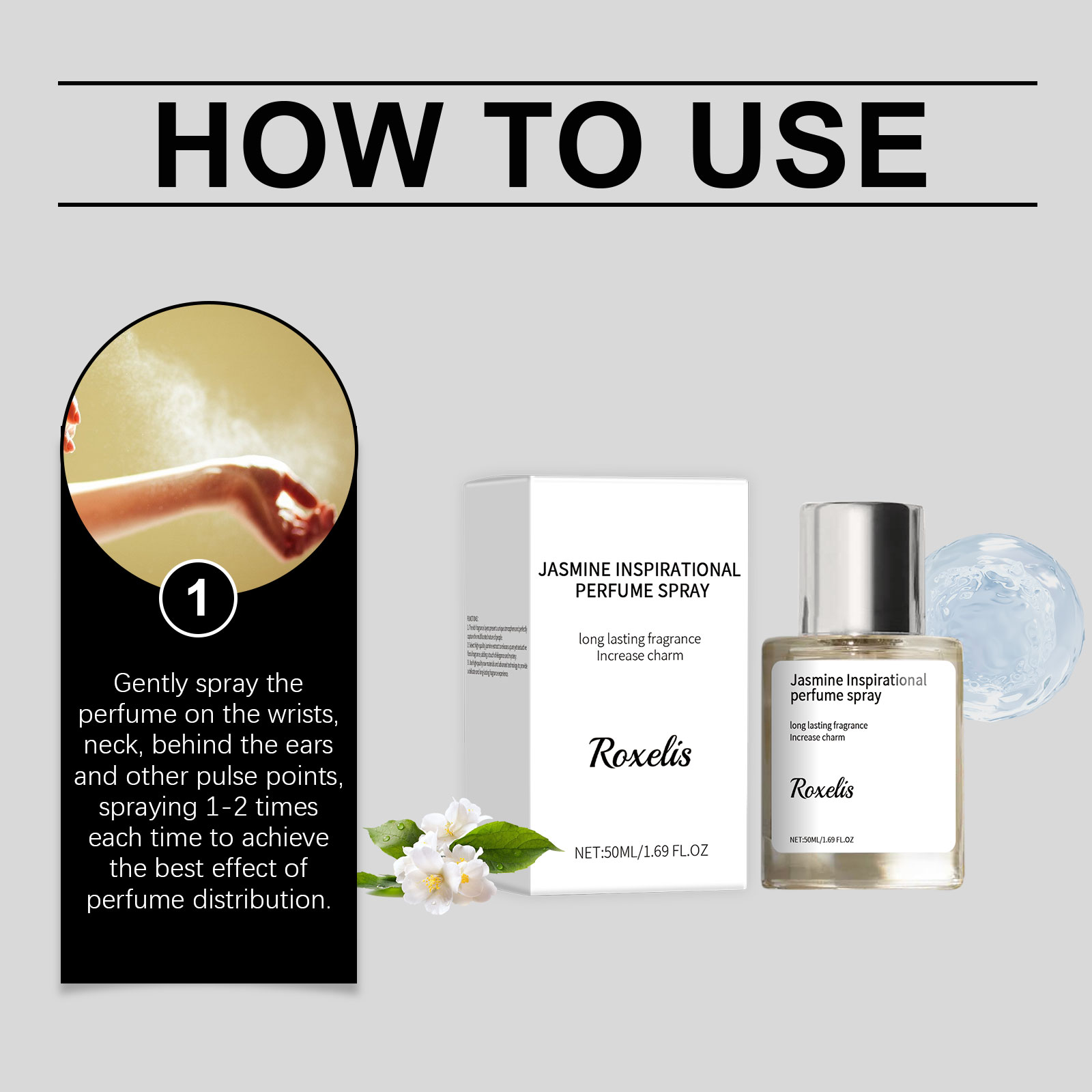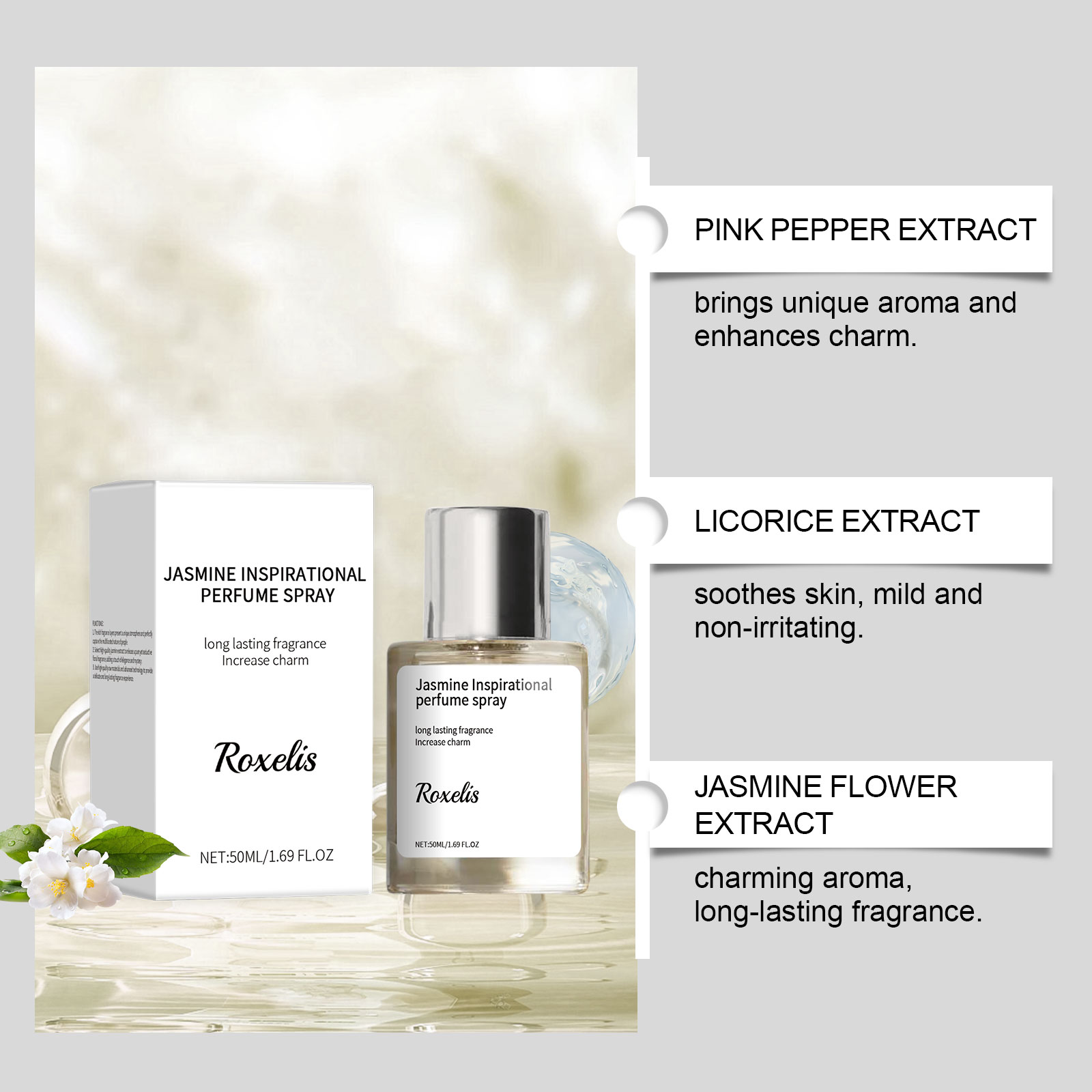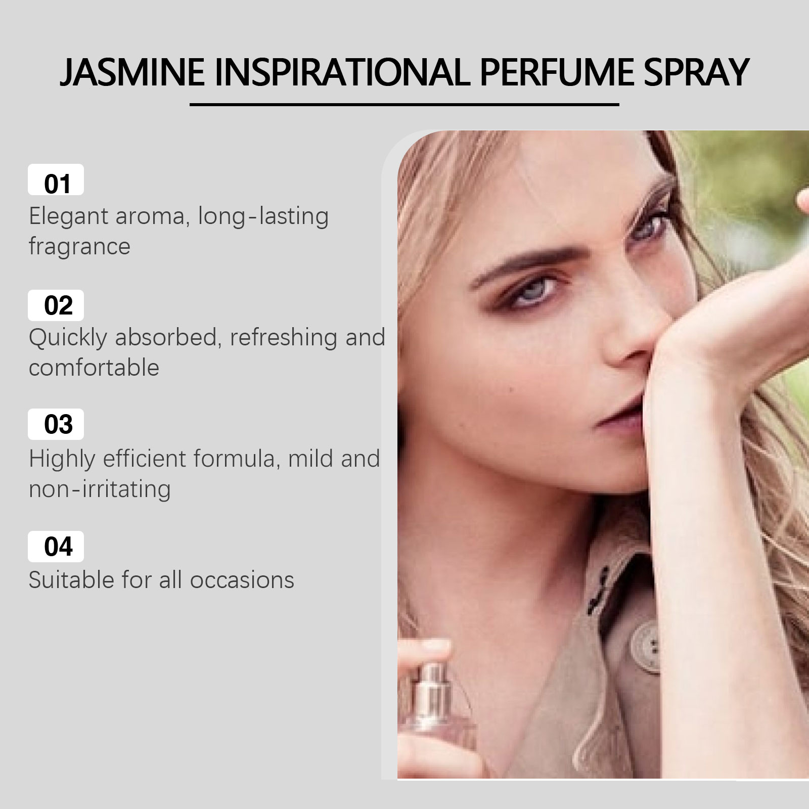 Our Inspired Perfume Spray (Jasmine) contains pink pepper extract, licorice extract, Jasmine extract. It can bring a unique aroma, enhance the charm. Soothing skin, gentle and non-irritating. Charming fragrance, lasting fragrance. Its use method is very simple: gently spray the perfume on the wrist, neck, behind the ears and other pulse points, each spray 1-2 times to achieve the best fragrance distribution effect. The charming jasminum brings an unparalleled sense of elegance. The long-lasting scent gives you confidence throughout the day.