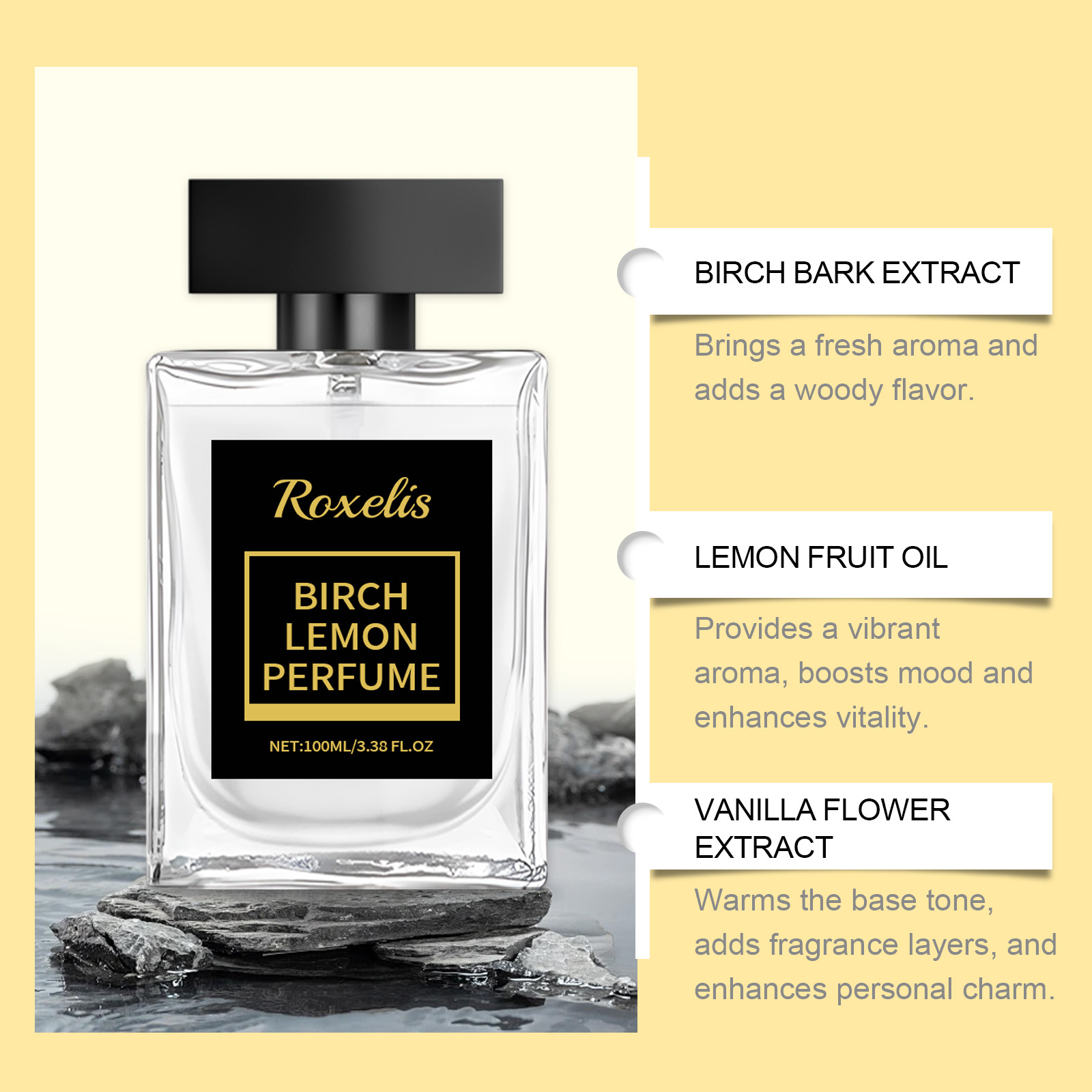 Our Men's Charm Aromatherapy (Birch Lemon) contains glycerin, birch bark extract, lemon fruit oil. It creates a fresh, long-lasting scent and enhances personal appeal. Deeply moisturizes skin, keeps skin soft and reduces dryness. Its use is simple: spray the spray on various parts of the body, such as the wrists, neck, behind the ears, or spray the spray in the air, then step into the mist and let the spray spread evenly throughout the body, leaving a fragrant aroma. Unique vanilla notes, adding mature charm. Unique and long-lasting fresh fragrance, instantly enhance personal charm, make you confident and focused.