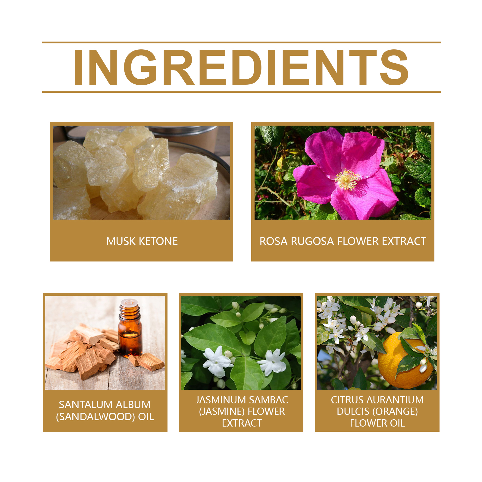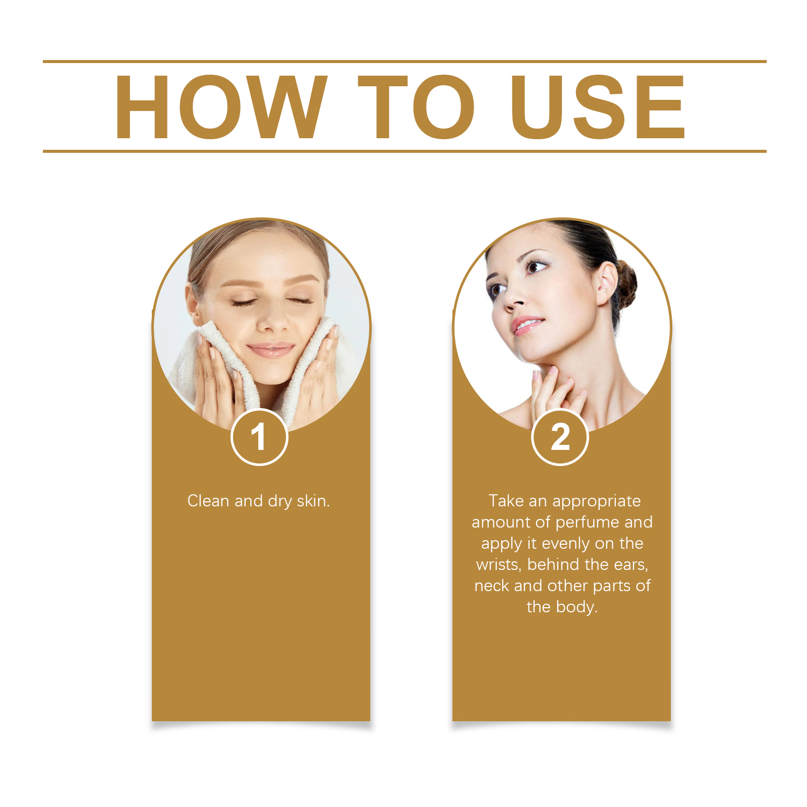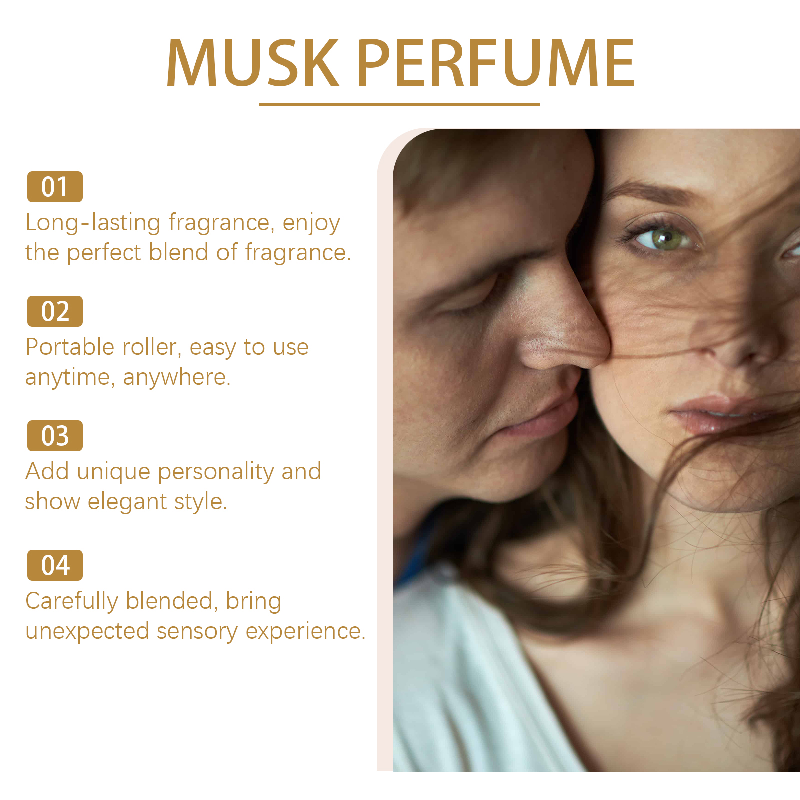 Our musk perfume contains musketone, rose extract and sandalwood oil. It adds charm and depth. The sweet flowers enhance elegance and add charm. The warm wood scent. Increase depth, enhance temperament. Its use is simple: 1. Clean and dry the skin. 2. Apply an appropriate amount of perfume to your wrists, behind your ears, neck and other parts of your body. Provides long-lasting fragrance effect and enhances charm. Bring sweet flowers, enhance elegance.