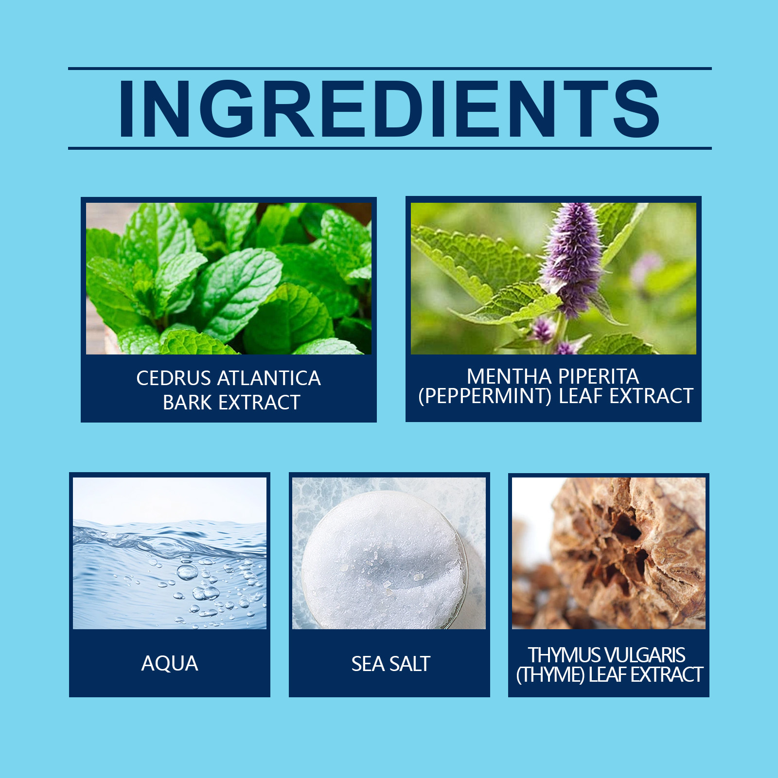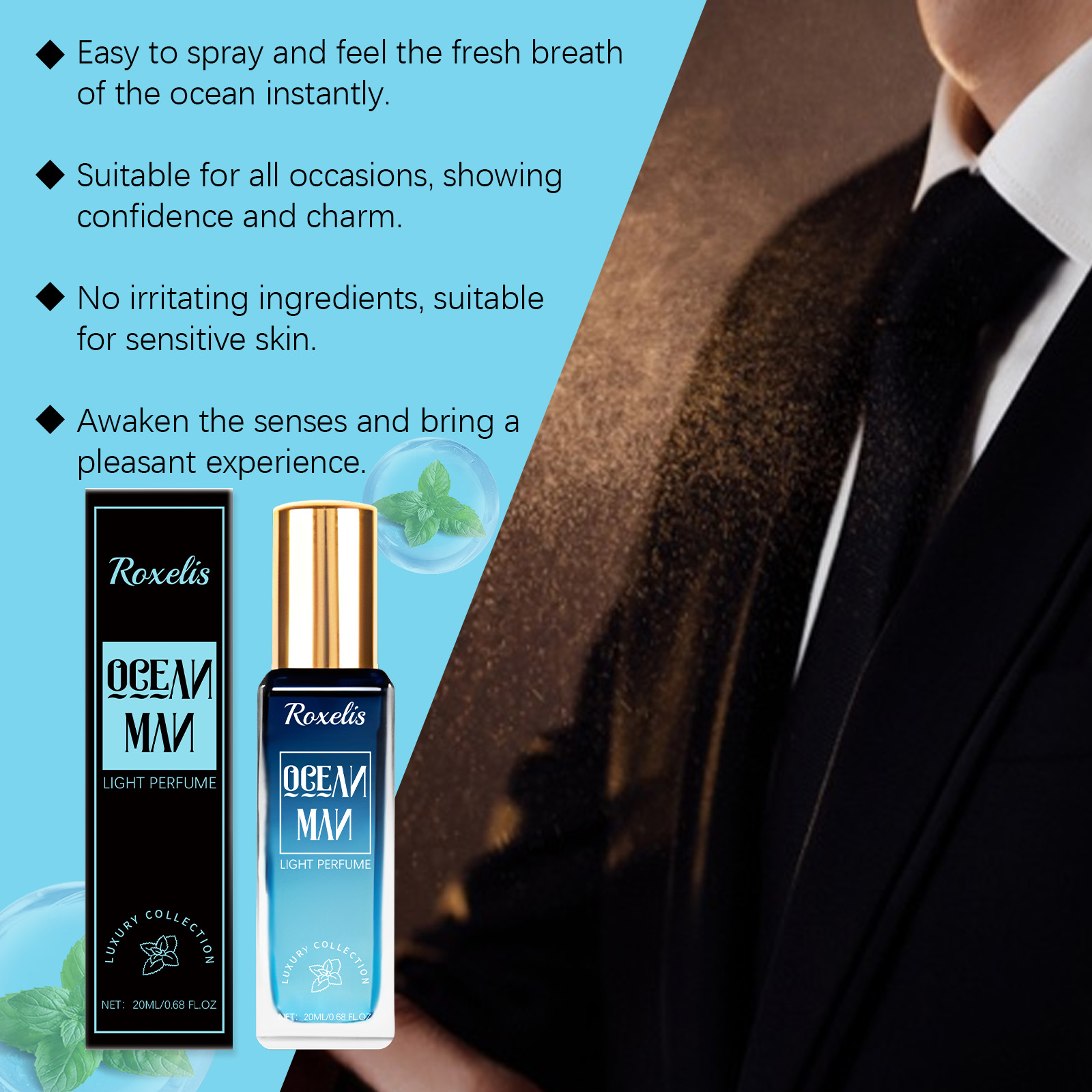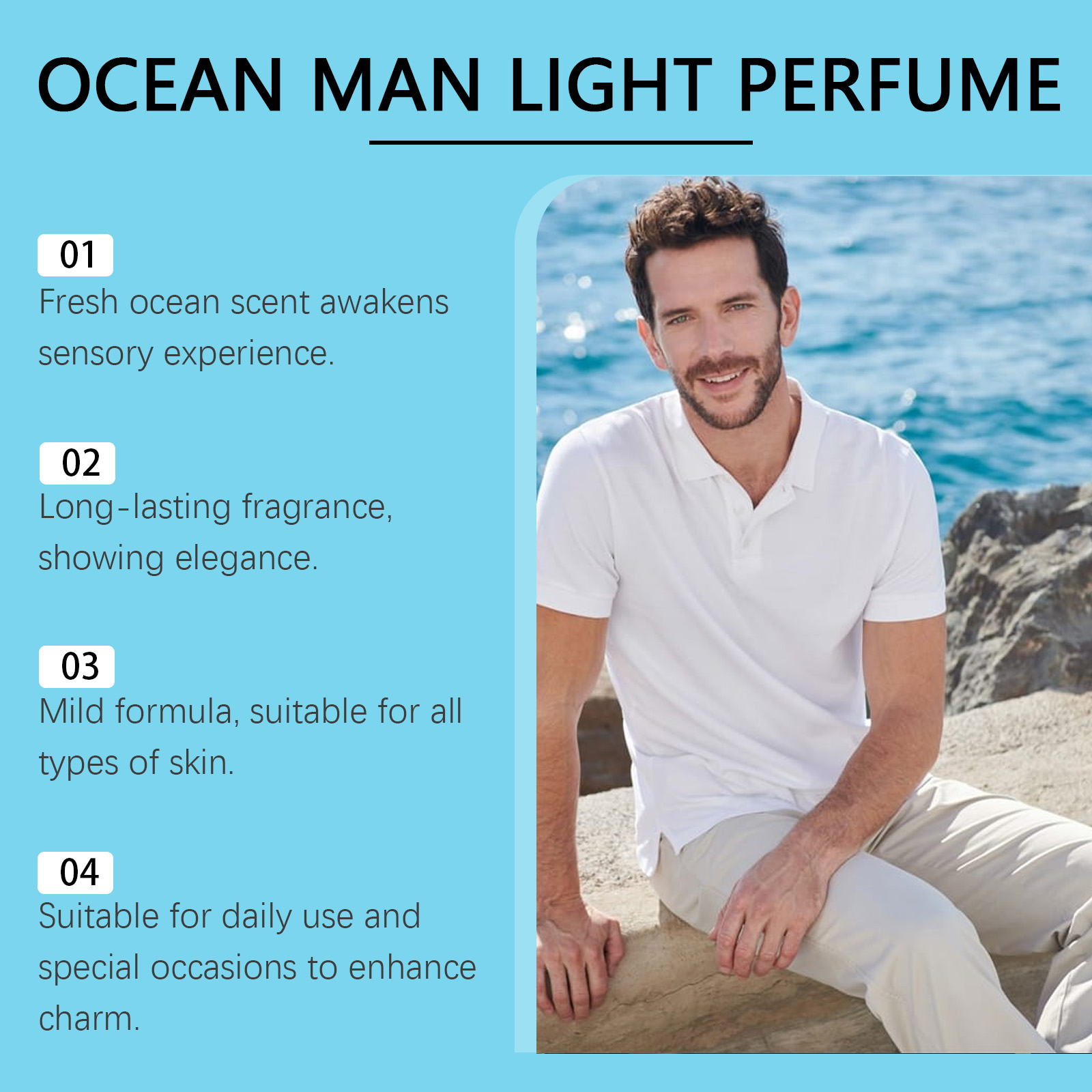 Our Ocean Fresh Luxury Eau de Toilette contains peppermint extract, cedar extract and sea salt. It can bring a fresh ocean feeling and is refreshing. Carefully formulated, lasting fragrance, enhance personal charm. Its use method is very simple: gently spray the perfume on the wrist, neck, behind the ears and other pulse points, each spray 1-2 times, to achieve the best perfume distribution effect. And suitable for all skin types, mild, non-irritating, safe to use. The aromas are richly layered, combining the refreshing scent of mint and the unique aroma of sea salt to create a unique atmosphere.