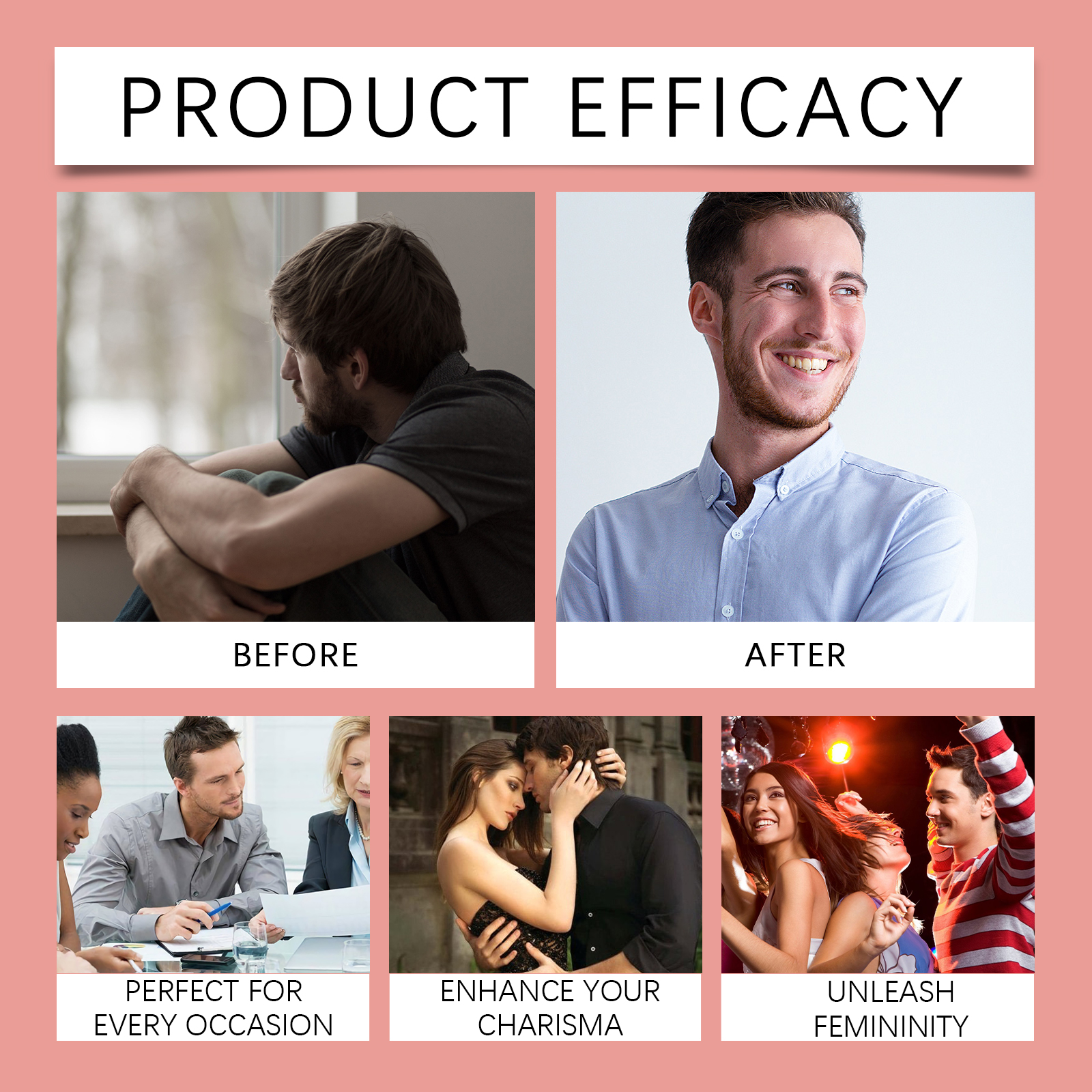 Our Pheromone Infused Perfume contains Jasminum Sambac(Jasmine)Flower Extract, Lonicera Japonica Flower Extract, Cinnamomum Cassia Bark Extract. It can enhance personal charm, add a unique personality, and show the charm of masculinity. Its application method is very simple: thoroughly clean the skin and dry, gently wipe the product on the inside of the wrist, behind the ears, neck and other body skin and collar. Can enhance interpersonal relationships, enhance intimate relationships, suitable for all kinds of occasions whether it is daily life, business or dating, can be perfectly used.