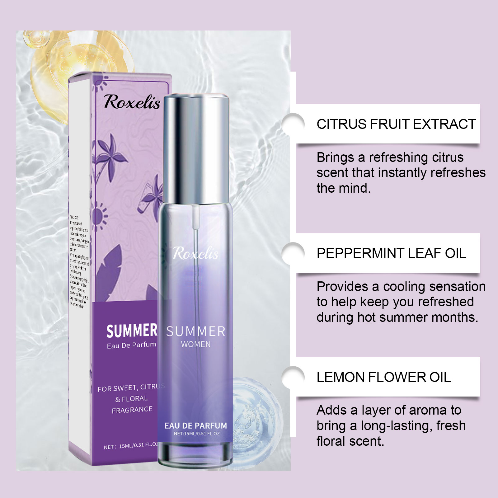 Our refreshing Citrus Summer perfume contains citrus fruit extract, bergamot fruit extract, mint leaf oil. It can provide a cool feeling and help you stay fresh and comfortable on hot summer days. Its application is simple: spray the perfume on the wrists, neck and behind the ears, or spray the perfume in the air and then into a mist, allowing the perfume to spread evenly throughout the body, leaving a fragrant smell. Brings fresh, fresh citrus aromas for immediate rejuvenation. For the summer to bring fresh and pleasant atmosphere, unique charm.