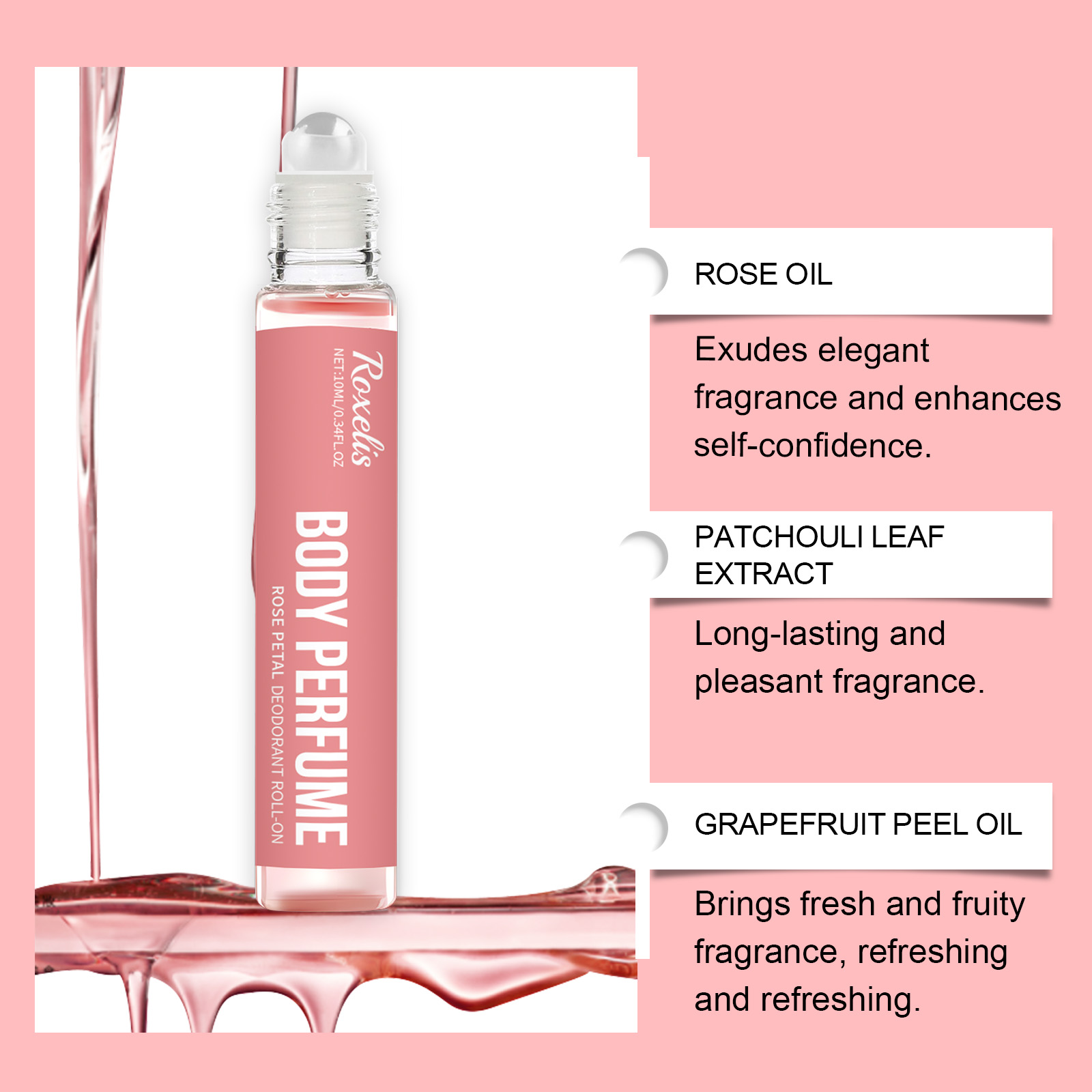 Our Rose Body Roll Perfume contains rose oil, patchouli leaf extract and grapefruit peel oil. It can exude elegant fragrance and enhance self-confidence; Long-lasting pleasant scent. Brings fresh fruit, fresh and refreshing. Its application is simple: Use a rolling ball to gently apply the perfume to sweaty areas such as behind the ears, neck, collarbones and armpits. Use 1-2 times each time to achieve the best effect of deodorization. Keep the scent charming throughout the day to keep you confident. Roller type ball design, easy to use anytime and anywhere.