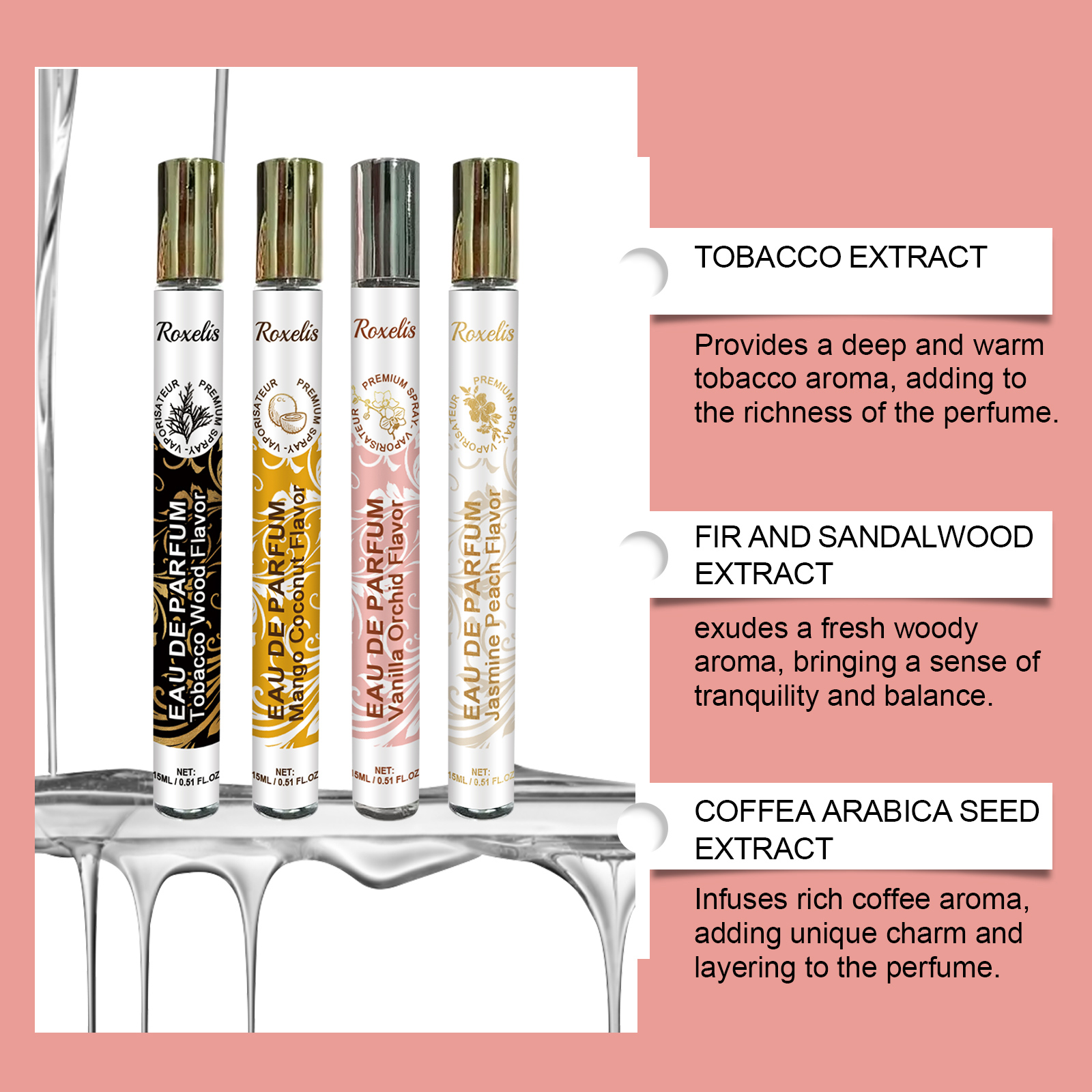 Our travel Fragrance (Jasmine Peach) contains jasmine extract, peach extract, amber extract. It can enhance personal temperament, suitable for a variety of formal and casual occasions. Made of plant extract, mild, non-irritating, safe and healthy. Its application is simple: spray the perfume on the wrists, neck and behind the ears, or spray the perfume in the air and then into a mist, allowing the perfume to spread evenly throughout the body, leaving a rich aroma. Highly concentrated essence formula, fragrance lasts all day.