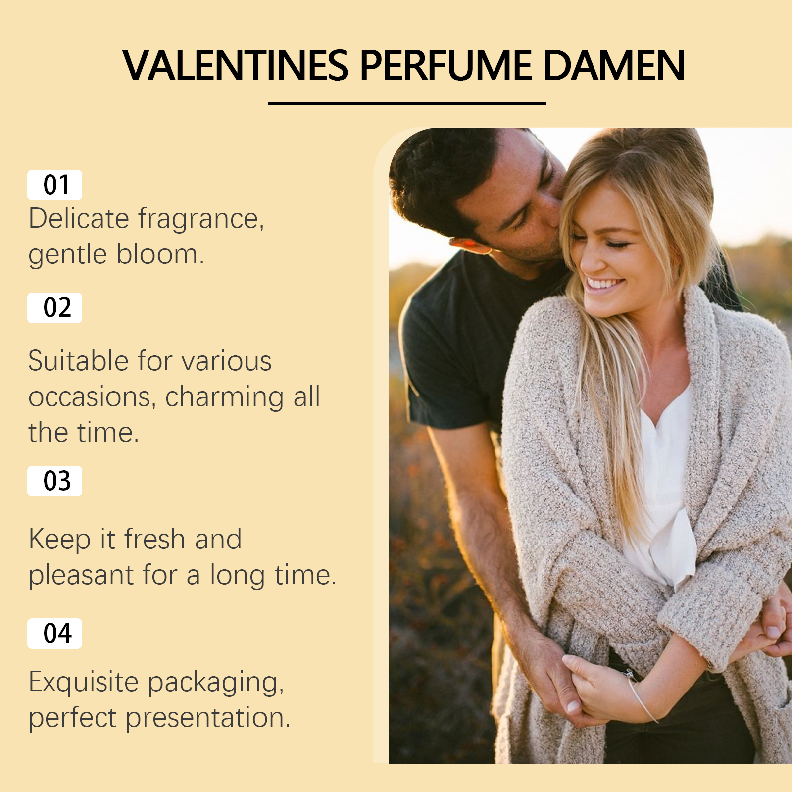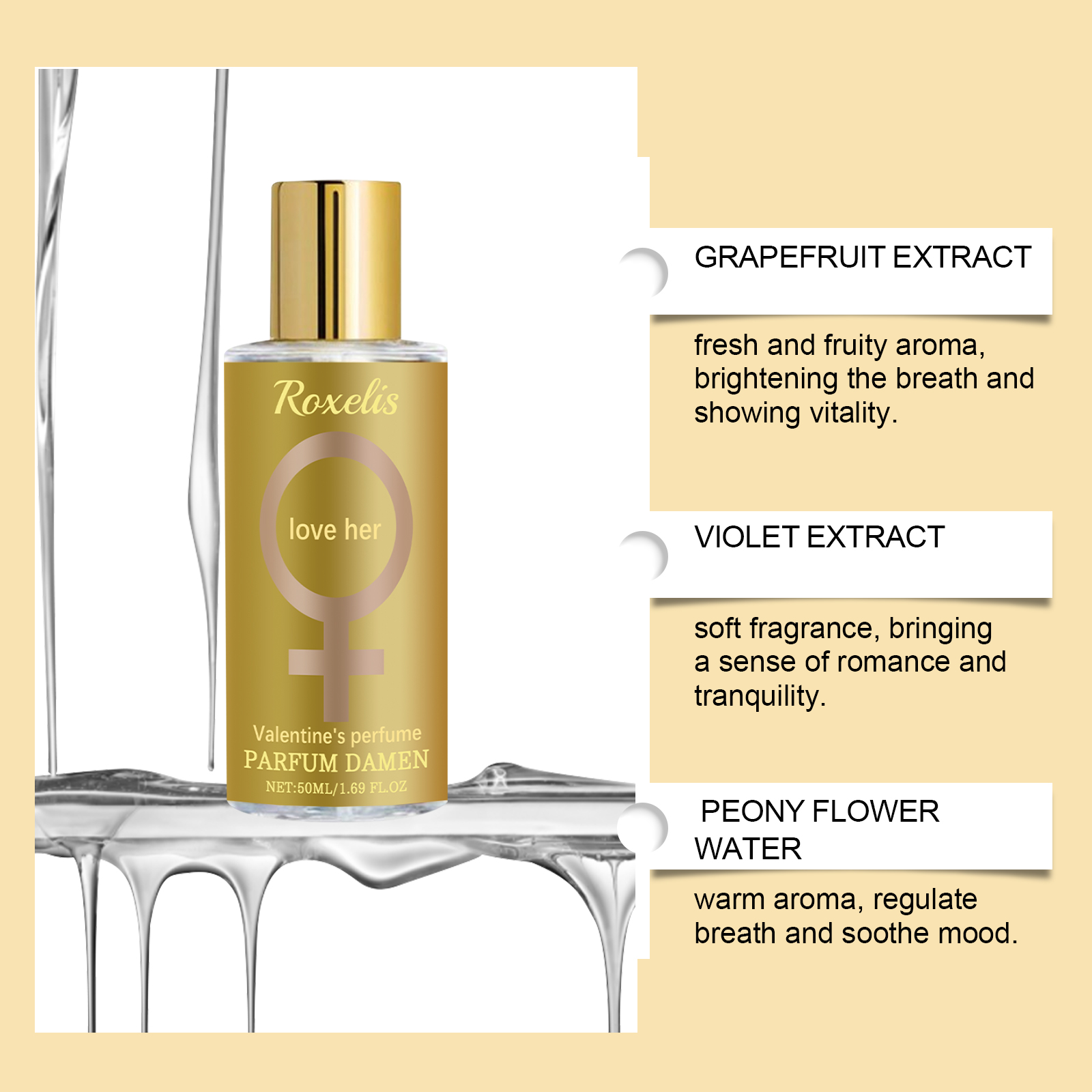 Our Valentine's Day fragrance for women contains PEG-40 hydrogenated castor oil and ethylhexyl glycerin. It can have a rich and long-lasting aroma. The perfect gift for Valentine's Day. Its use method is very simple: gently spray the perfume on the wrist, neck, chest and other pulse points, each spray 1-2 times, to achieve the best perfume distribution effect. And can be fresh and soft, giving it a charming temperament.
