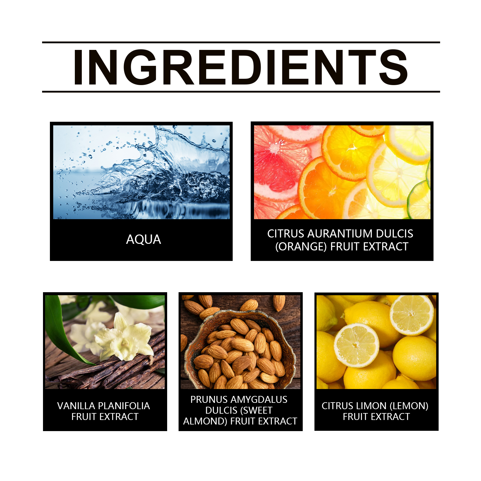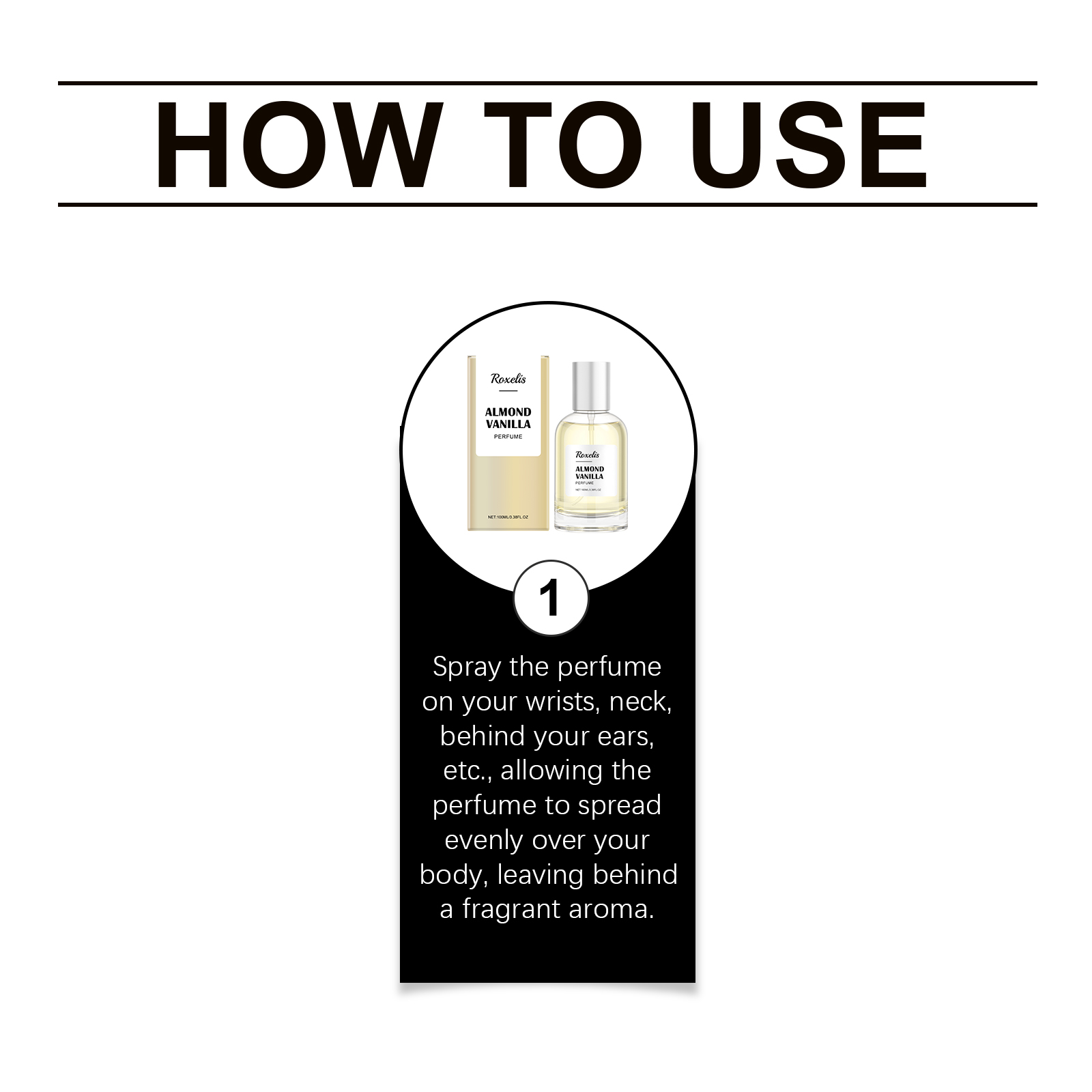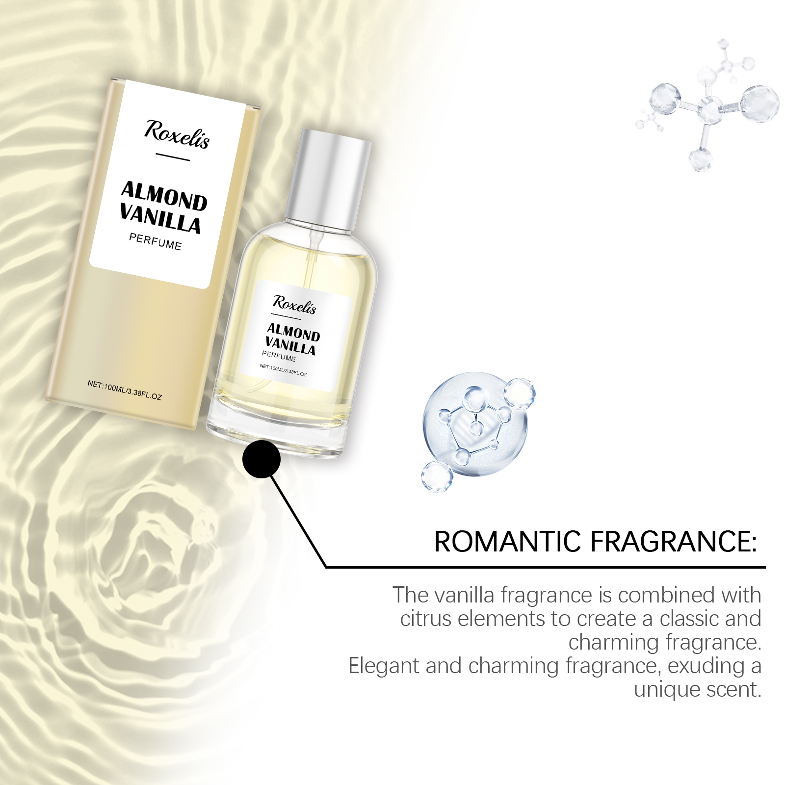 Our Vanilla Charm perfume contains vanilla fruit extract, sweet almond fruit extract, citrus lemon fruit extract. It can be unique fragrance lasting, always bring attractive breath. Delicate fragrance, creating a romantic atmosphere. Its use method is very simple: spray the perfume on the wrist, neck, behind the ears and other parts, so that the perfume is evenly distributed throughout the body, leaving a strong aroma. Light but not heavy! Give a soft and comfortable experience. Attractive scent, adding confidence and charm. The rich aroma, giving a person a kind of elegant, personal atmosphere, unforgettable.