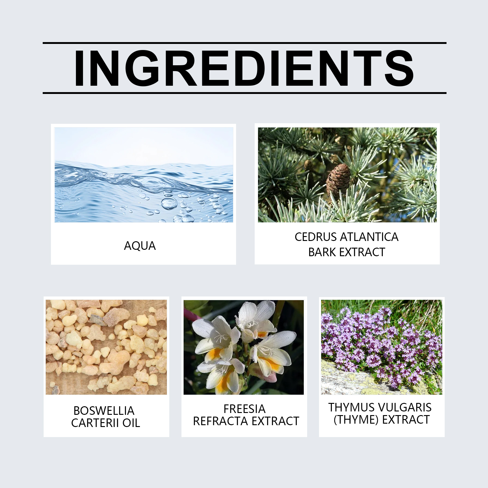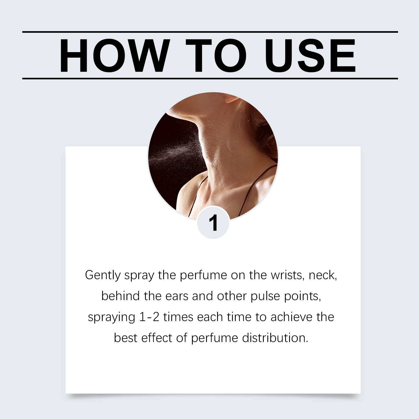 Our women's eau de Toilette spray contains frankincense oil, freesia extract, musk extract. It can provide a lasting and elegant wood scent. Brings a deep and warm aroma and elevates the fragrance level. Add freshness and flowers to make the aroma more attractive. Its use method is very simple: gently spray the perfume on the wrist, neck, behind the ears and other pulse points, each spray 1-2 times, in order to achieve the best effect of perfume distribution. Combined with frankincense oil and musk extract, add a rich aroma experience; The spray design is light and non-greasy, and it is refreshing and comfortable to use.
