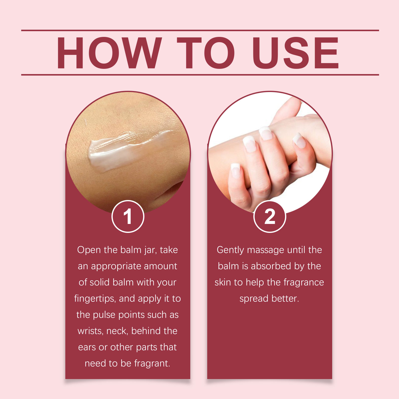 Our ladies floral solid balm contains mineral oil, mineral grease. It can bring elegant flowers, soothing mood. Add sweet fragrance, enhance female charm; Bring a fresh scent and keep the scent lasting. Its use method is very simple: 1. Open the balm tank, take a proper amount of solid balm with the fingertips, and apply it on the wrist, neck, behind the ears and other pulse points or other parts that need fragrance. 2 Massage gently until the balm is absorbed into the skin to help the fragrance spread better. Jasmine and rose oils give off a lasting floral scent. Compact solid paste, easy to carry.