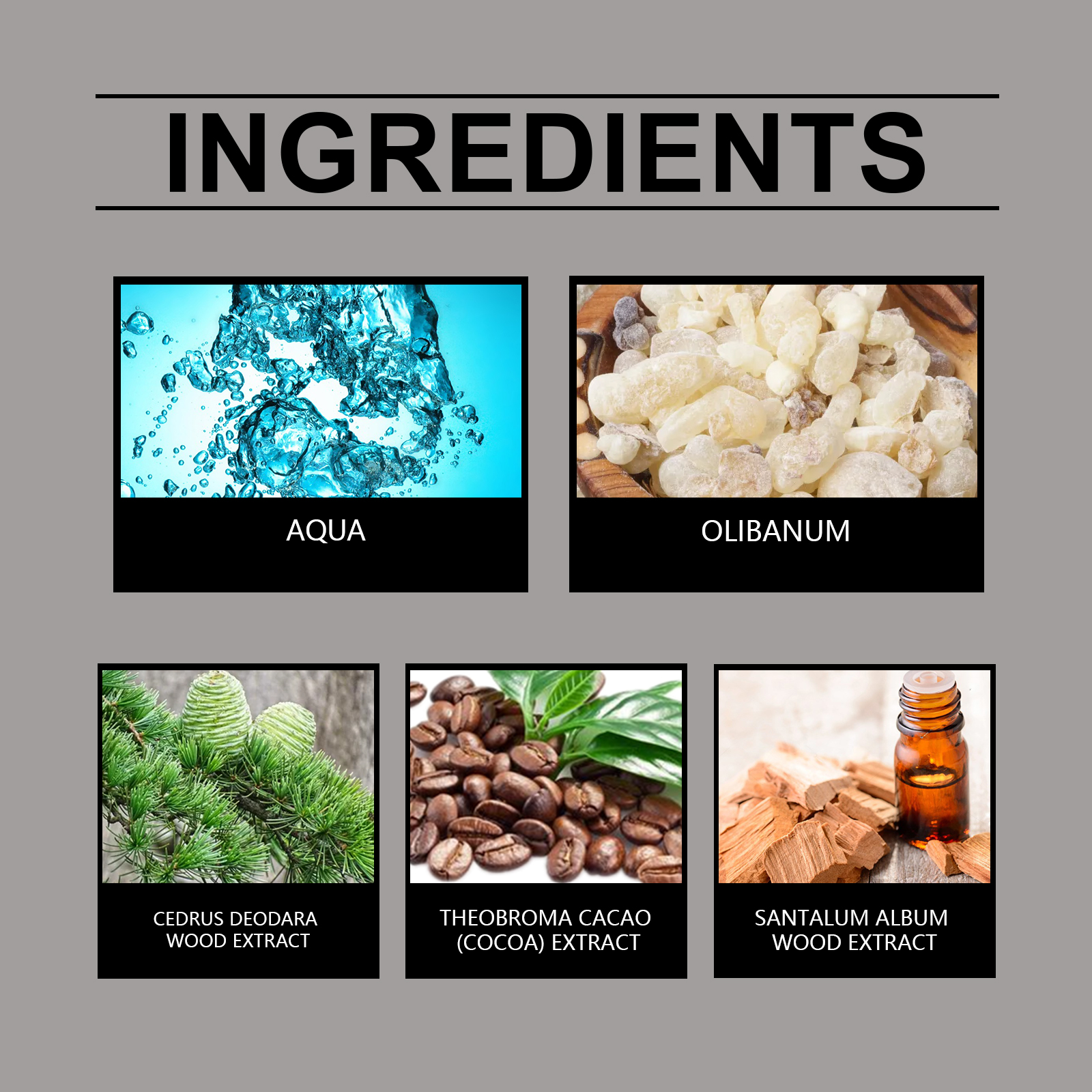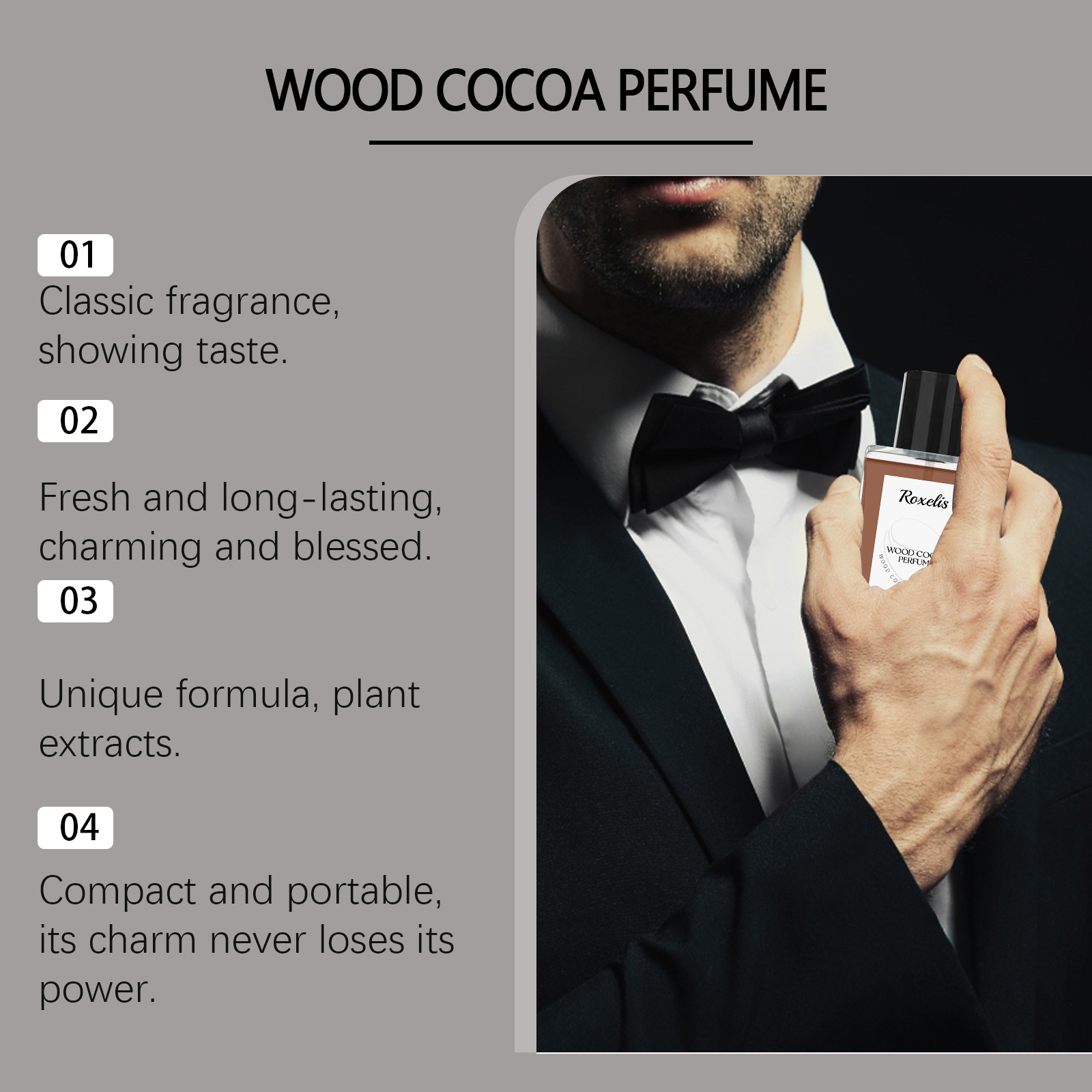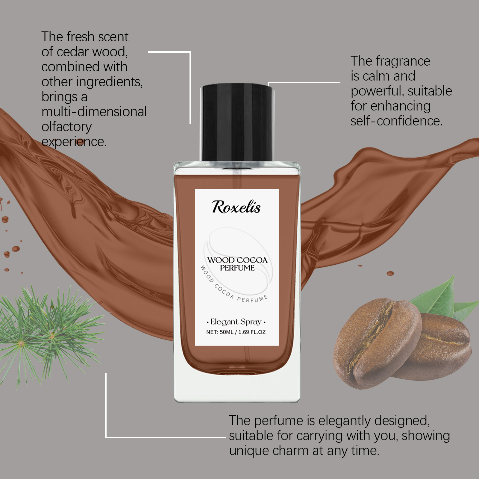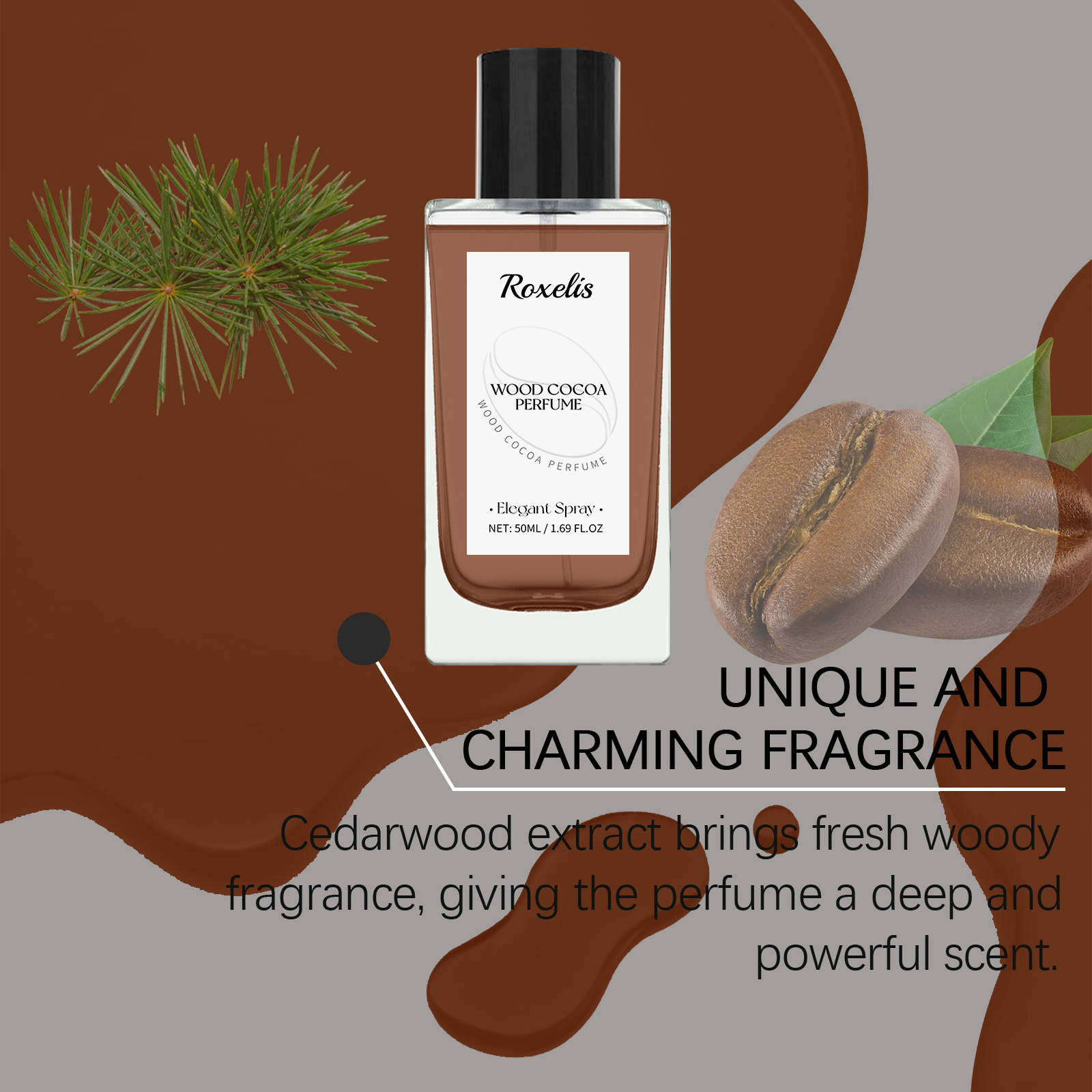 Our wood cocoa Eau de Toilette contains frankincense, cedar wood extract and sandalwood extract. It can bring a warm wood scent, infusing stability and comfort into the whole perfume. Its use method is very simple: gently spray the perfume on the wrist, neck, chest and other pulse points, each spray 1-2 times to achieve the best fragrance distribution effect. Carefully formulated spices ensure long-lasting fragrance and long-lasting freshness. Combine the special scents of cocoa and frankincense to create a personalized perfume for every occasion.