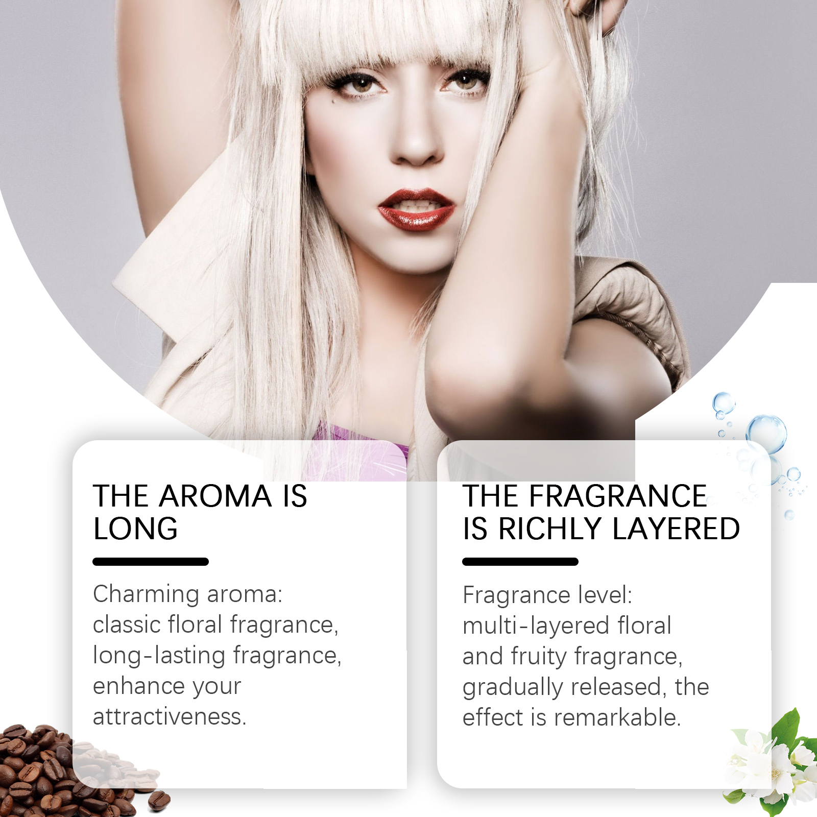 Our women's pheromone Ball Jasmine Perfume contains jasmine extract, orange extract, coffee extract. It can lighten neck lines, improve roughness, whiten and lighten skin, firm and elastic, and instantly increase your personal attractiveness index. Its use is simple: 1. Clean and dry the skin; 2. Apply an appropriate amount of perfume to your wrists, behind your ears, neck, and other parts of your body. Ladies pheromone Ball Jasmine Perfume charming aroma: classic floral, long-lasting fragrance, enhance your charm; Fragrance level: multi-layer floral and fruity, gradually released, the effect is remarkable. Suitable for all seasons, suitable for all occasions and costumes.