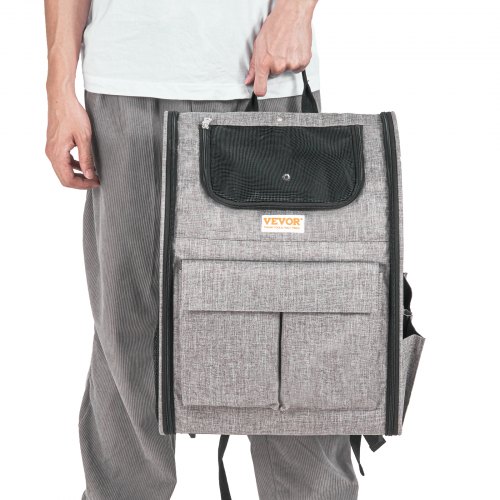 VEVOR Rolling Pet Carrier Backpack with Removable Wheels for Under 18LBS, Large Soft Sided Wheeled Dog Carrier Cat Travel Carrier Airline Approved for Small Dogs and Medium Cats with Upgraded WheelsDurable WheelsEasy to CarryEasy InstallationThoughtful Details18 lbs Weight Capacity3-sided Mesh WindowsPull Rod Material: Aluminum Alloy,Color: Gray,Zipper: Self-locking Zipper,Bag Size: 425x355x280mm/16.7x13.9x11 in,Production Weight: 5.5 Ib/2.5 kg,Storage Pockets: 5,Mesh Windows: 3 sides,Model: JW-XB21212519 (T802),Maximum Load Capacity: 18 lb/8.1 kg,Wheel Diameter: 2.1 in/5.5 cm,Number of Wheels: 4,Production Dimensions: 13.4x11x16.5in,Main Material: 600D Oxford Cloth